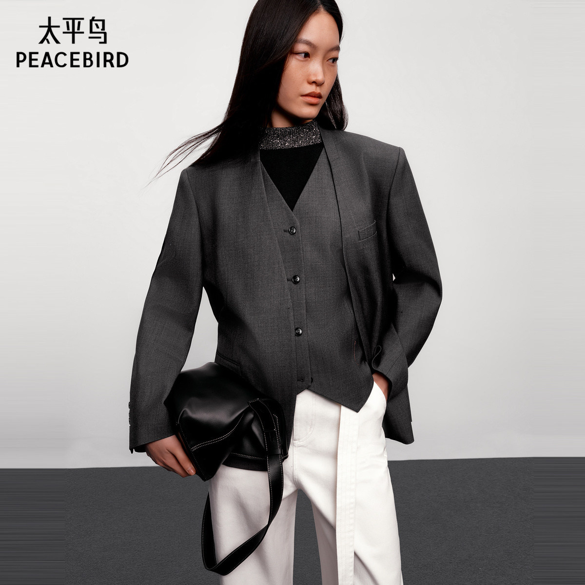 【商场同款】太平鸟假两件无领西装25新一手长通勤外套A1BAF3413