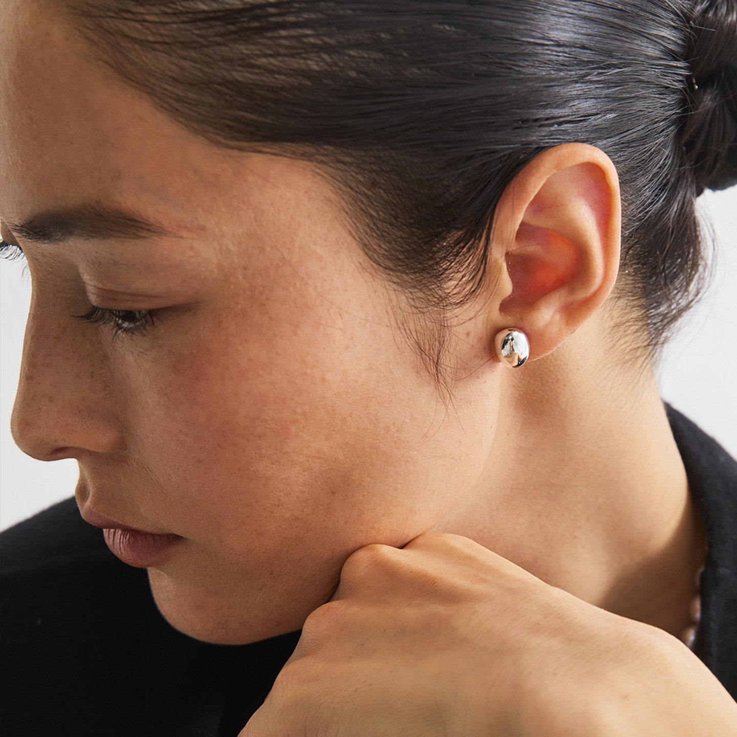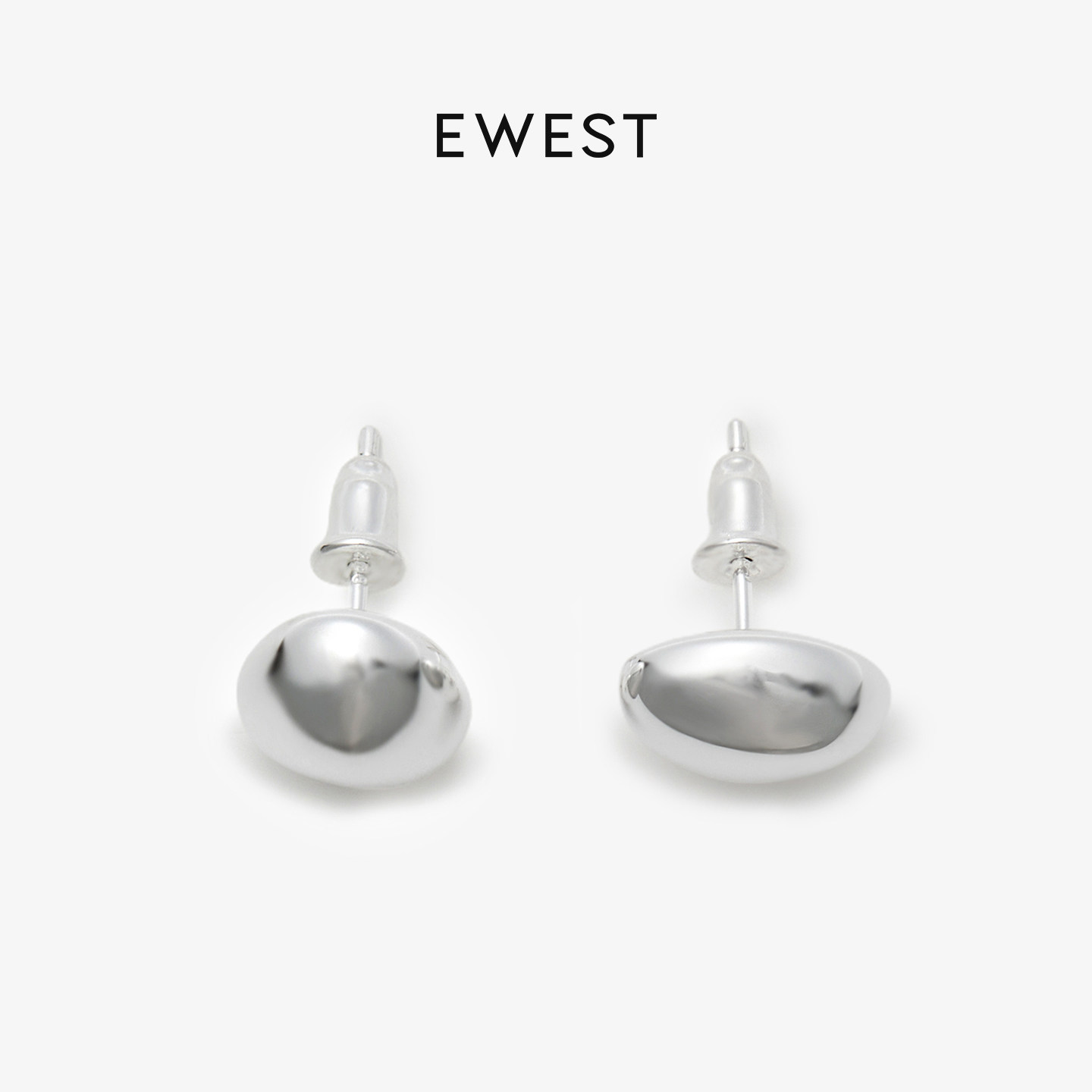 EWEST FLOW素银泡泡耳钉经典小众设计素面银女简约耳饰原创轻奢