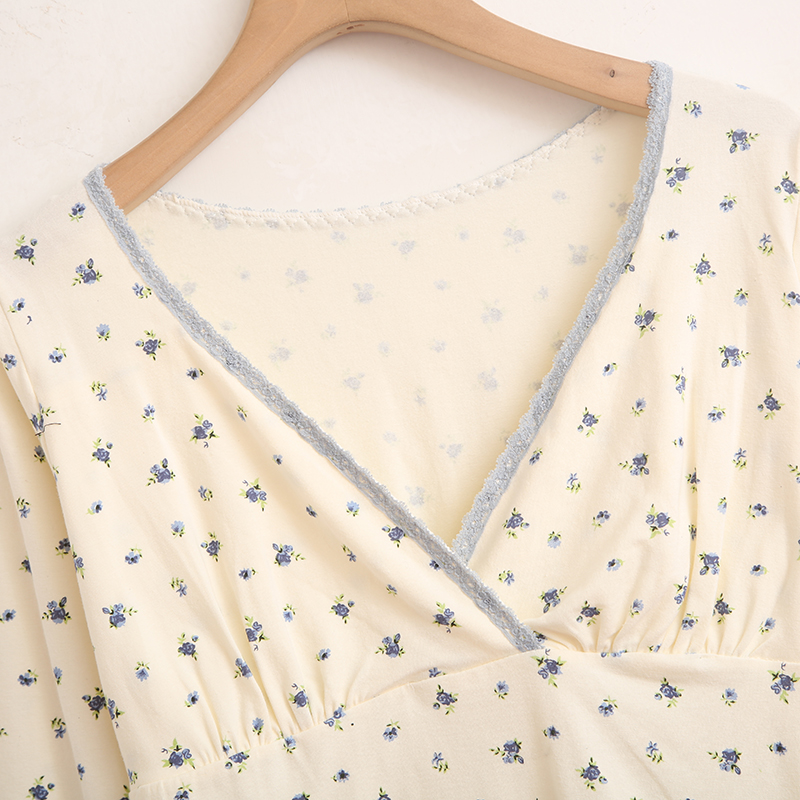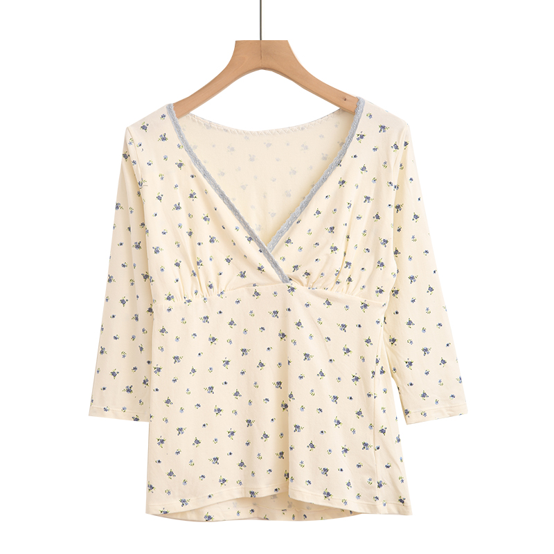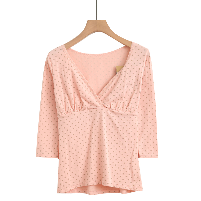 显瘦哺乳衣女纯棉交叉式喂奶秋衣上衣免穿文胸哺乳睡衣时尚月子服