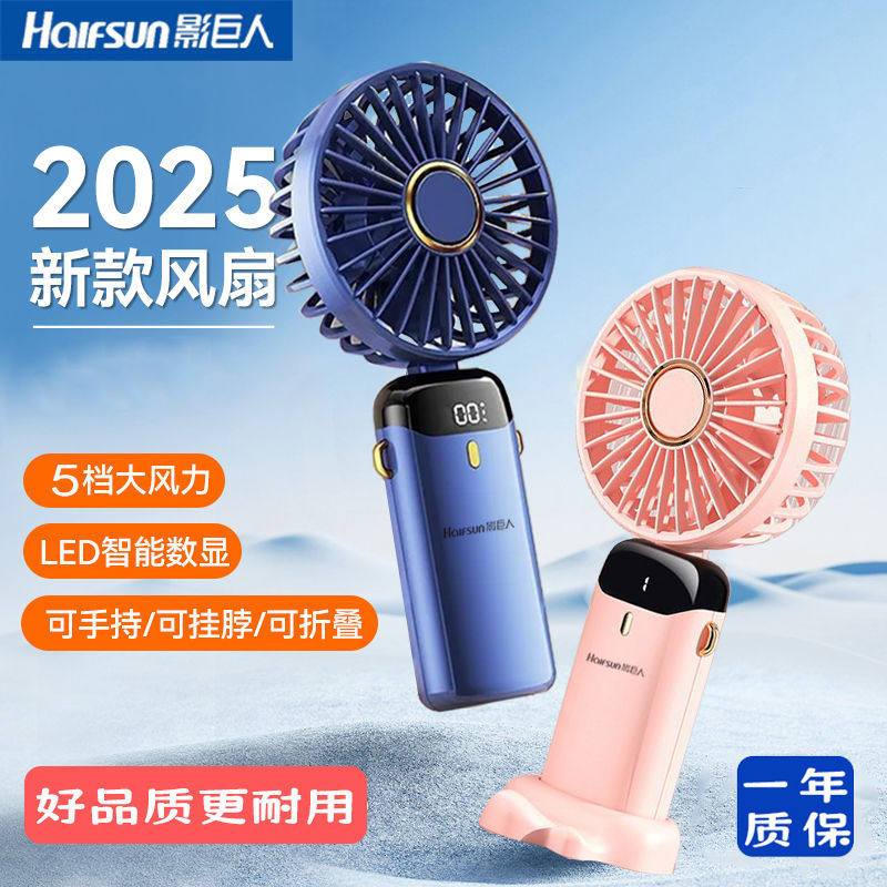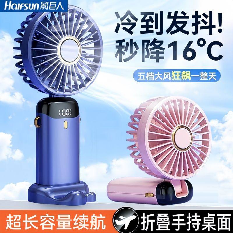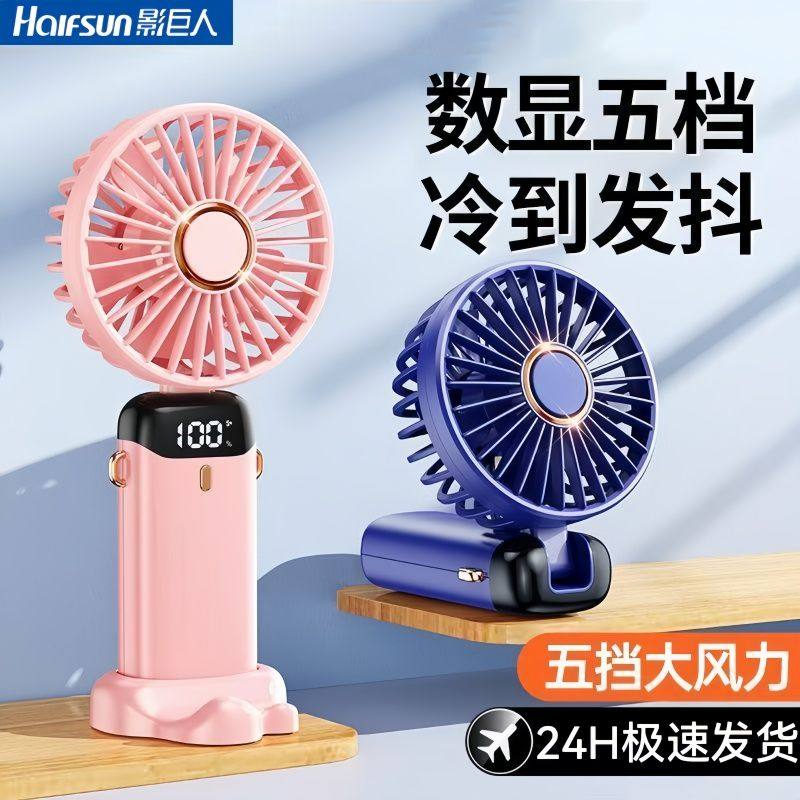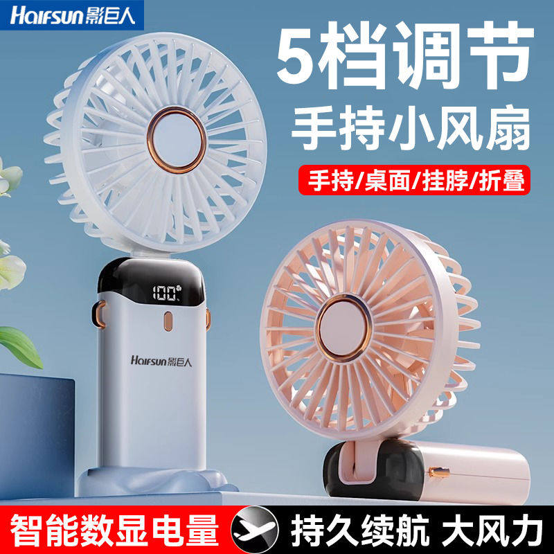 影巨人手持风扇usb风扇大风力强风学生可充电静音挂脖迷你小风扇