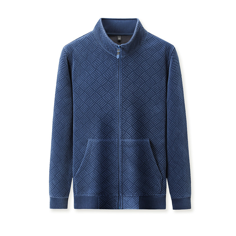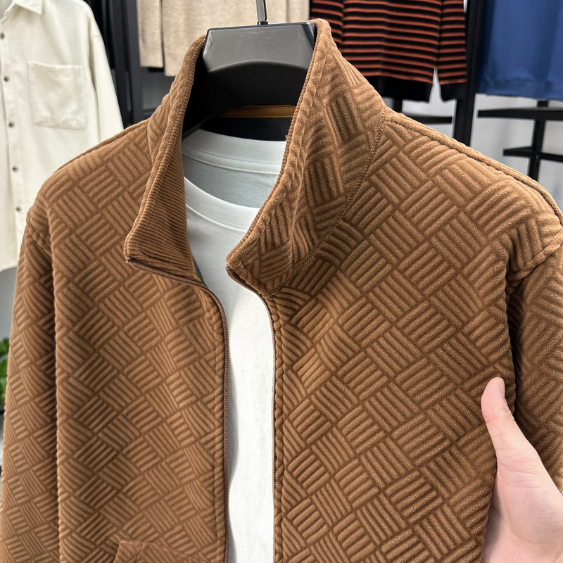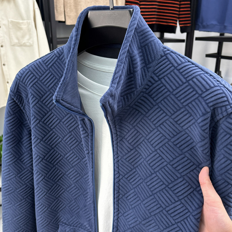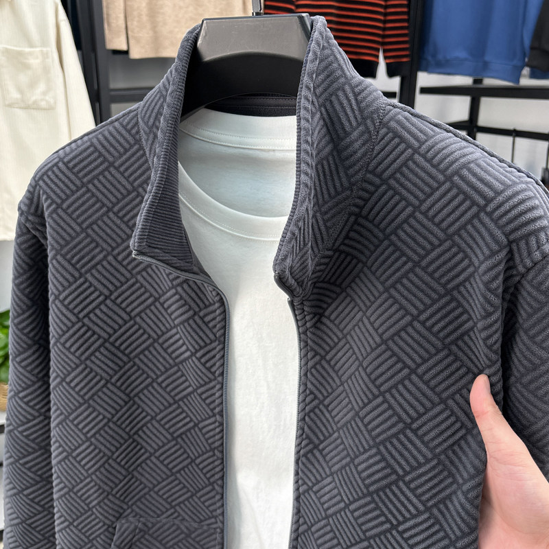 摇粒绒卫衣男外套压花立领开衫秋冬季抓绒衣加绒加厚保暖夹克男装