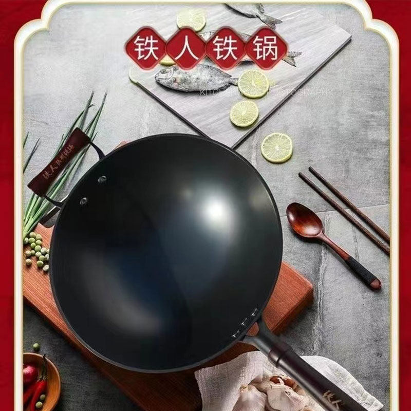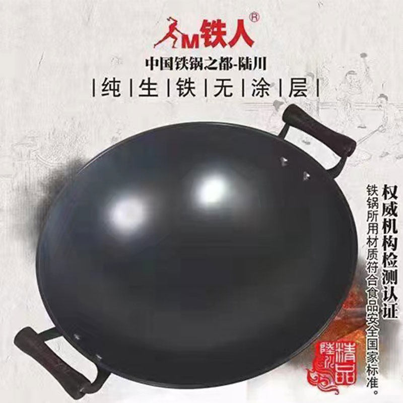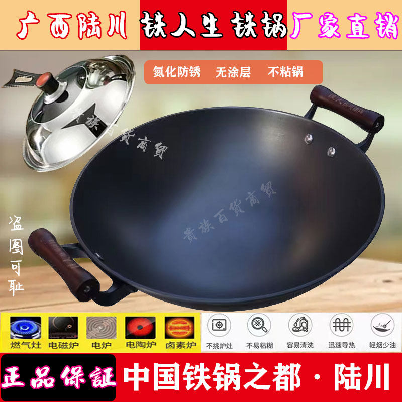 第代升级广西陆川铁人牌铁锅生铁锅生锈无涂层老式家用炒锅