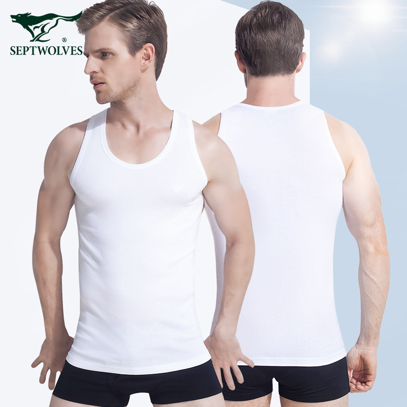 七匹狼老年人背心男士男款纯棉打底内搭全棉运动吸汗无袖老头汗衫
