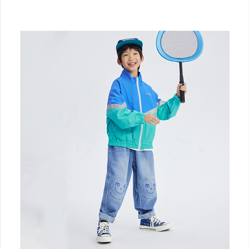 马拉丁漫画家中大童拼接撞色户外拒水风衣儿童反光机能风外套上衣
