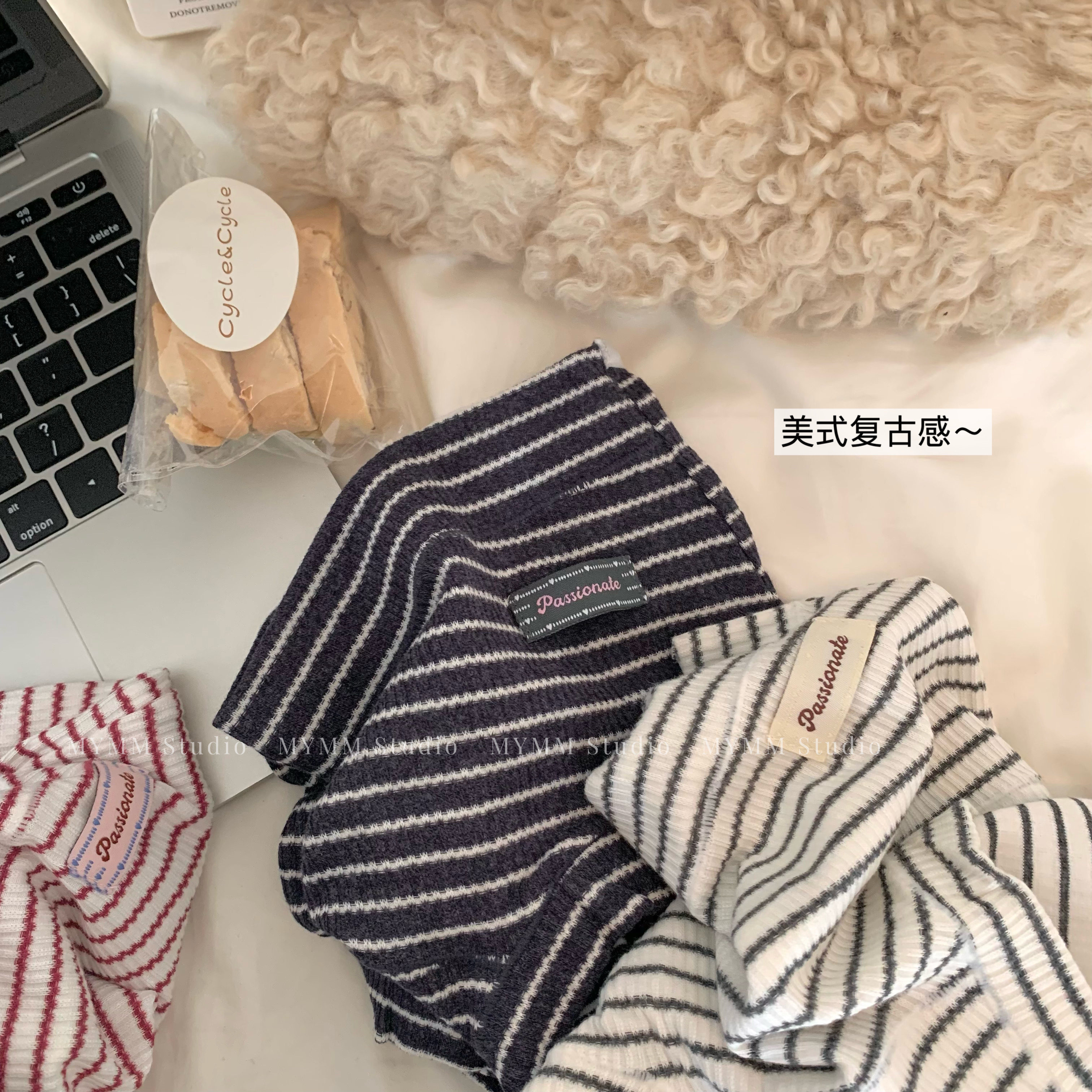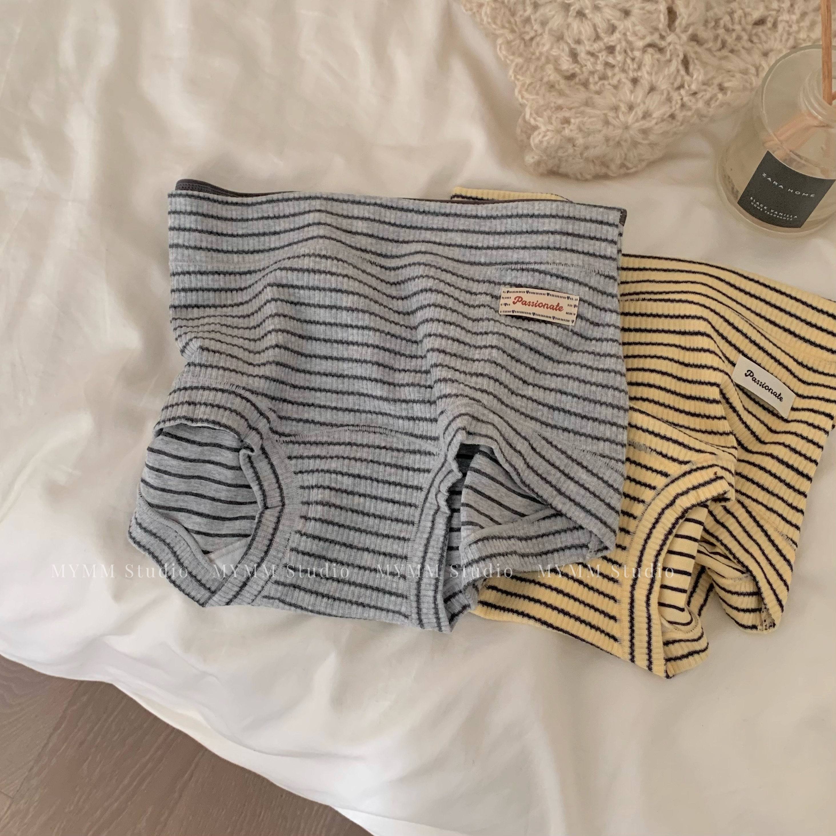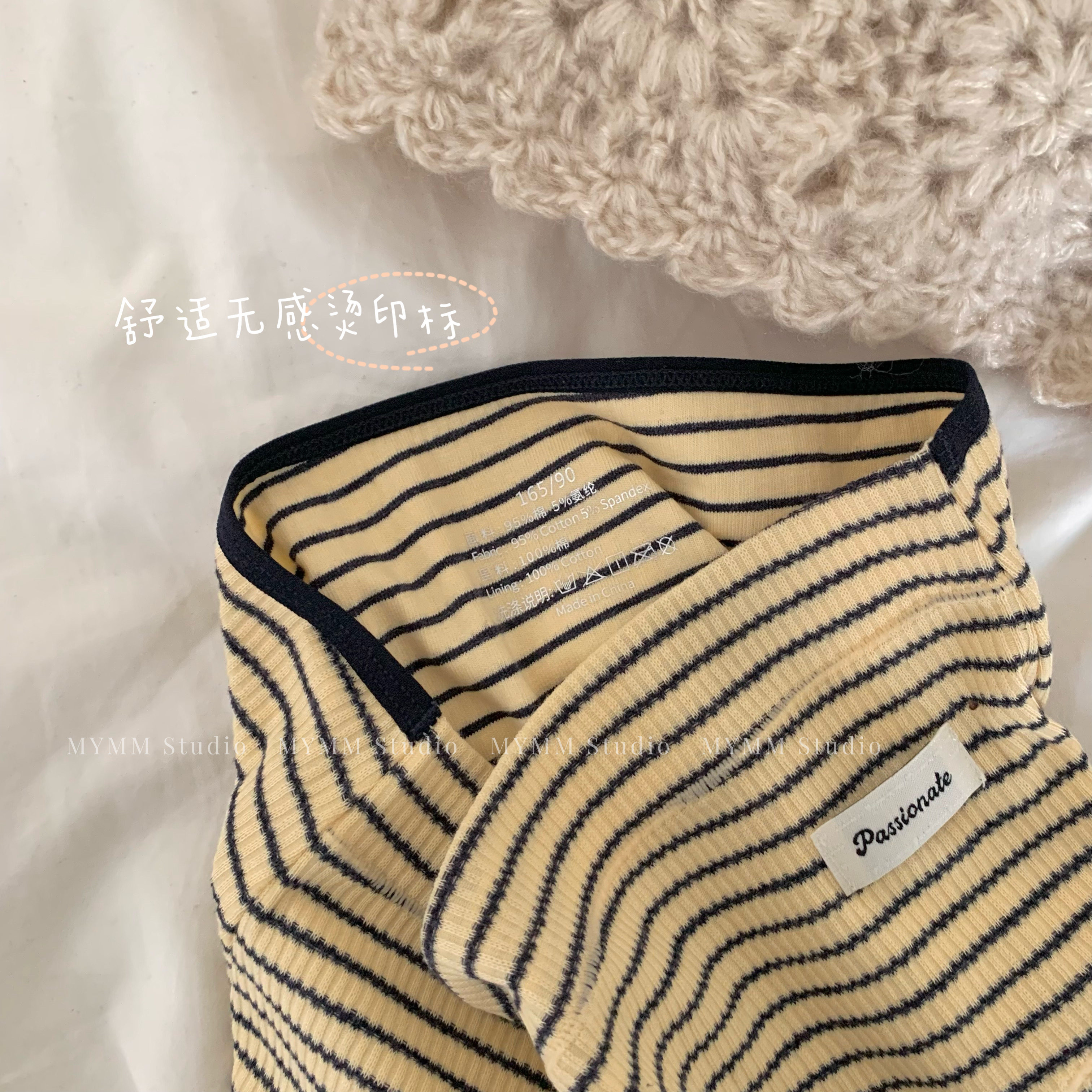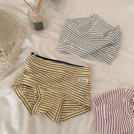 11/3 20:00 美式女高 复古运动甜心纯棉条纹布标中高腰内裤