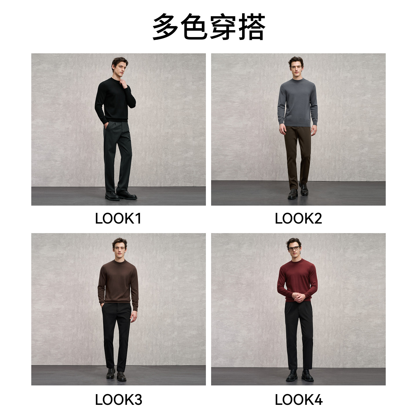 【纯羊毛】EMZ鄂尔多斯秋冬新款抗菌保暖商务休闲圆领针织毛衣男