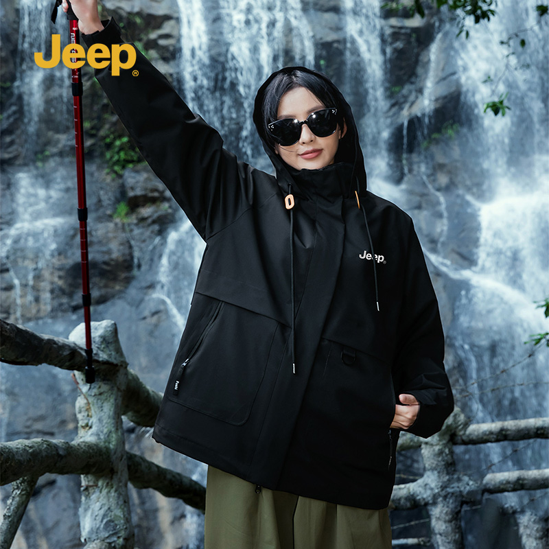 Jeep吉普外套男女春秋2025新款情侣风衣户外三合一防风冲锋衣旅游
