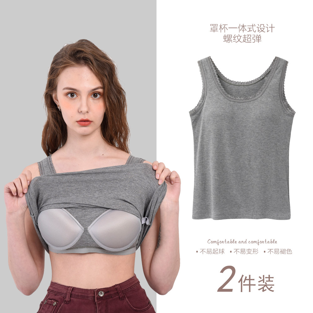 莫代尔带胸垫一体式吊带背心女内衣大码修身百搭打底衫薄款外穿夏