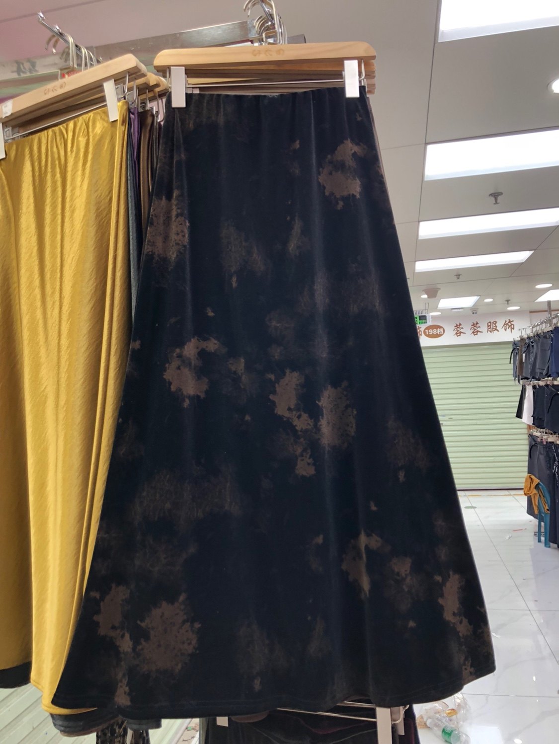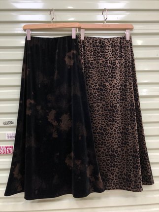 新中式泼墨扎染印花丝绒豹纹半身裙秋季垂感气质显瘦A字鱼尾长裙