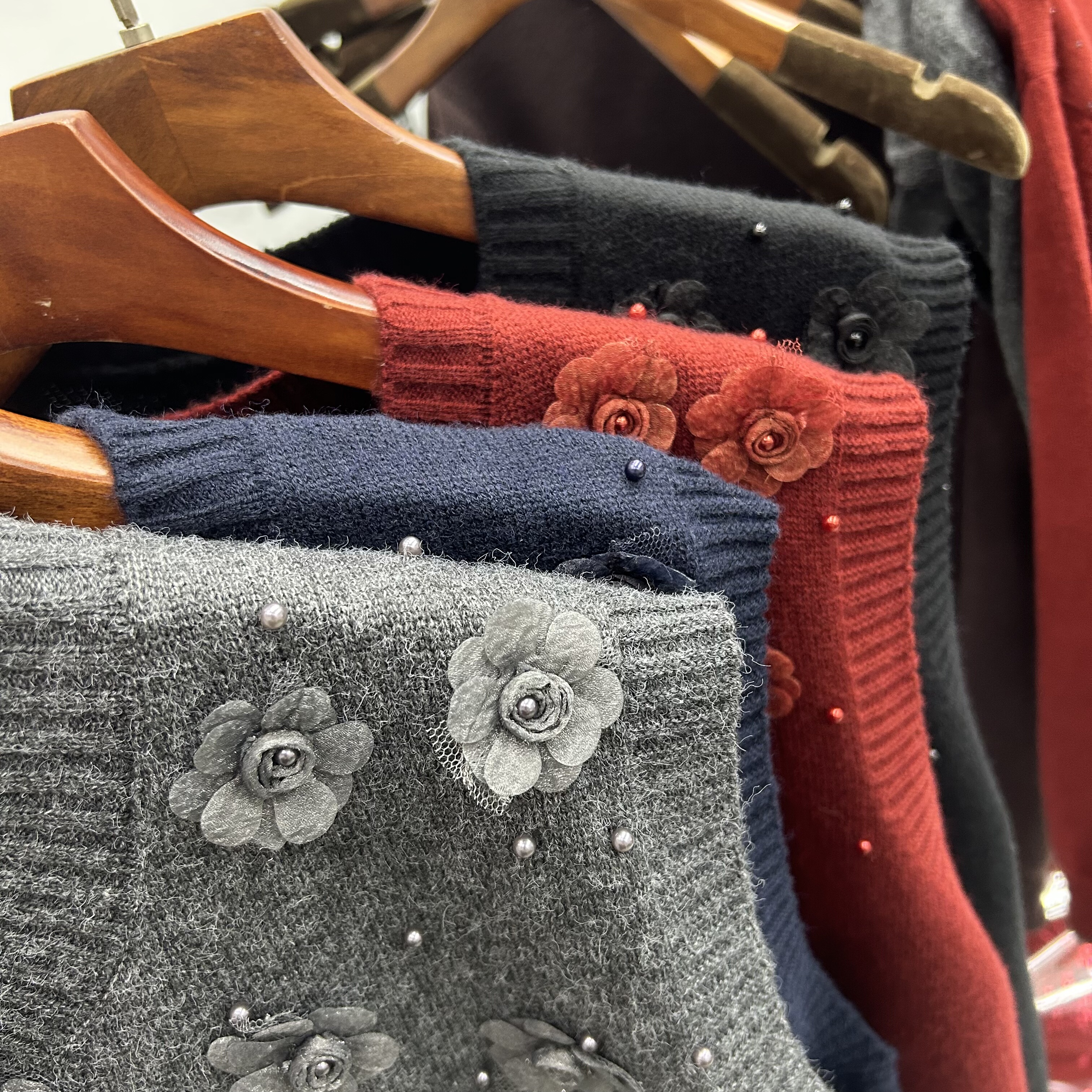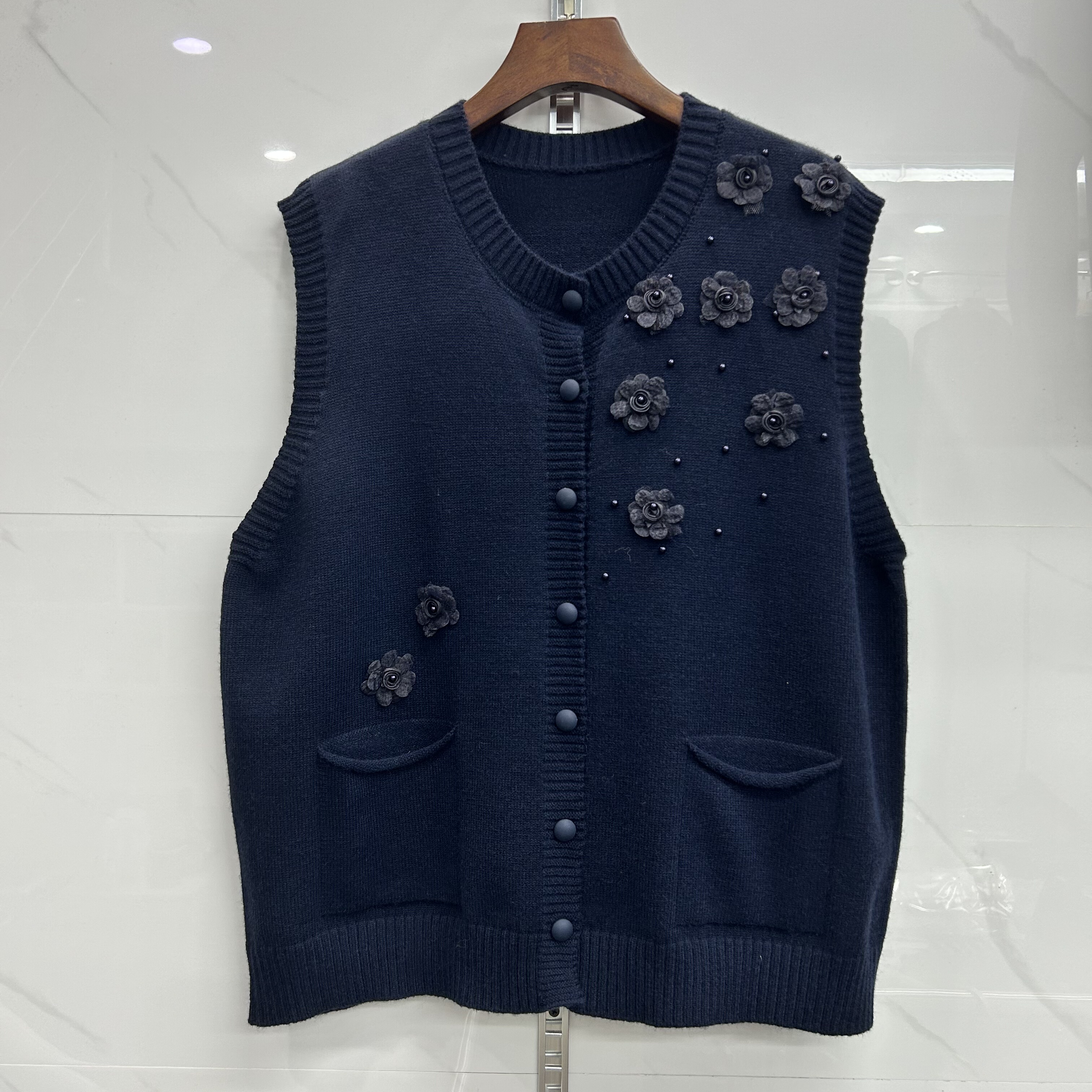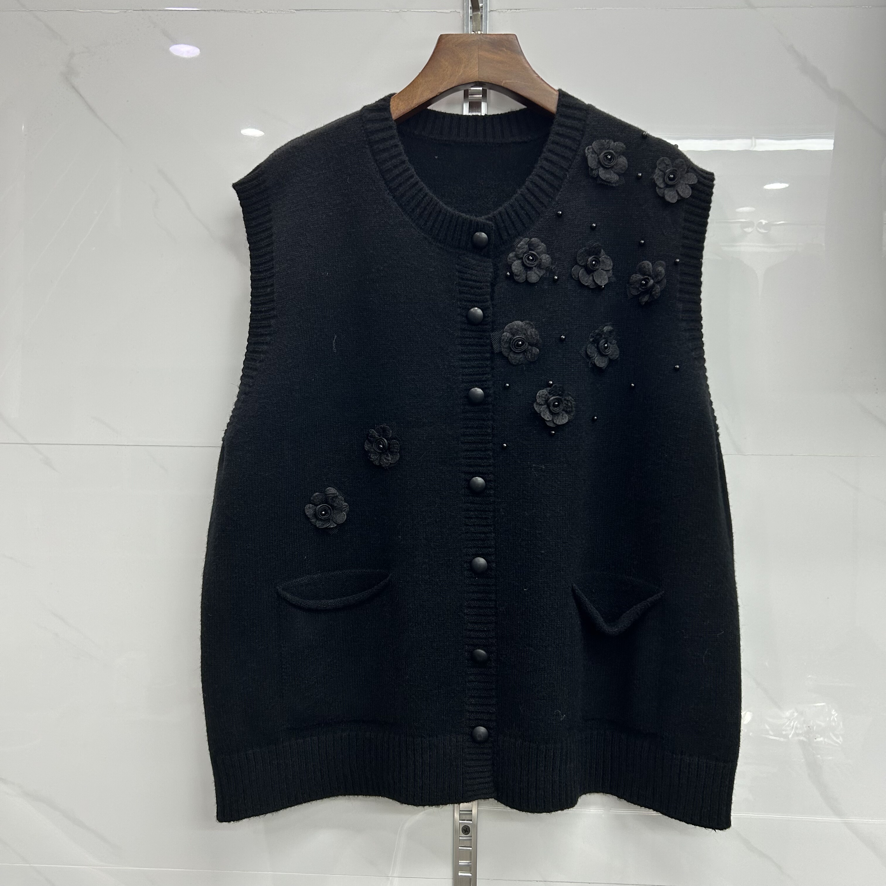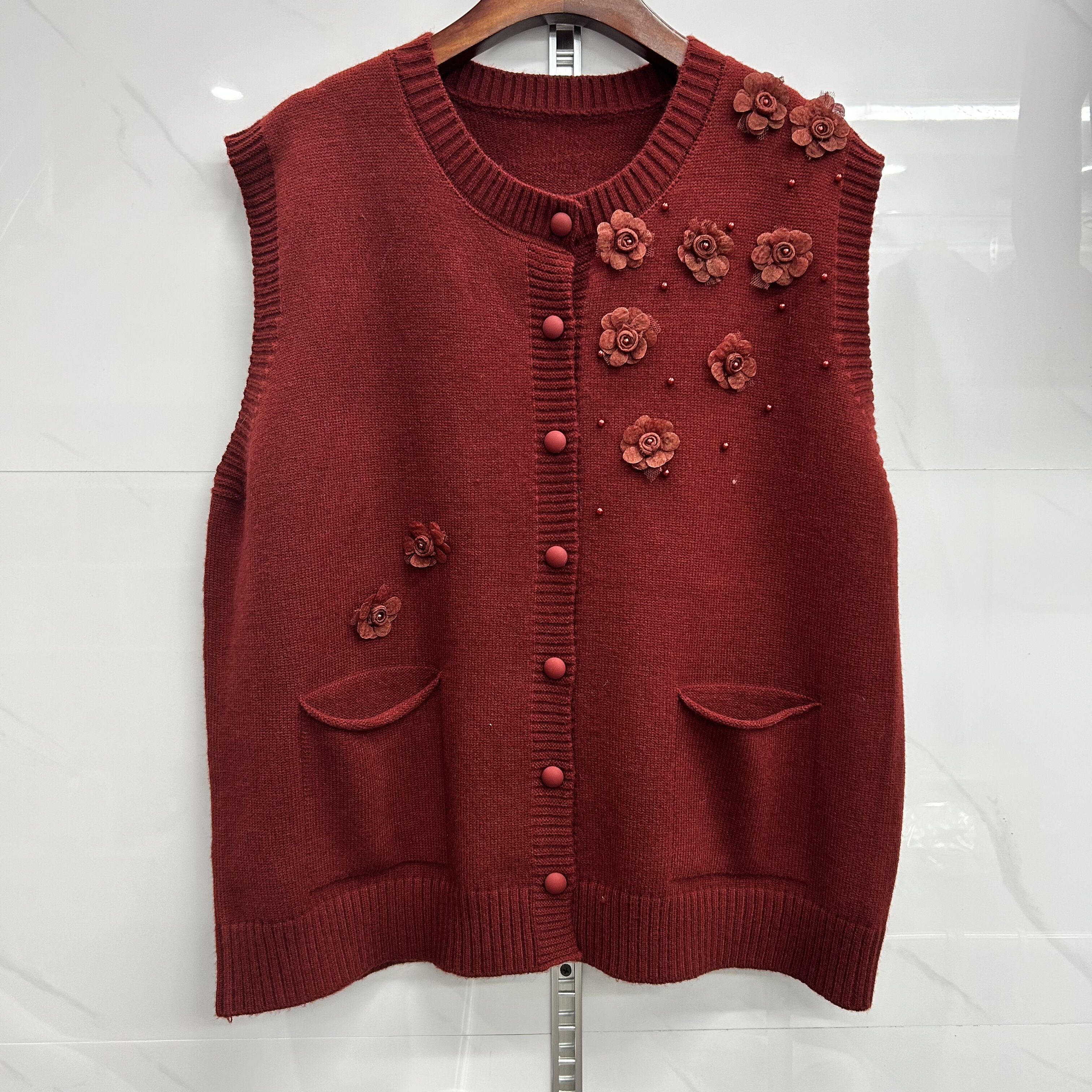 中老年妈妈装马甲背心外套手工花针织衫洋气上衣女宽松无袖百搭女