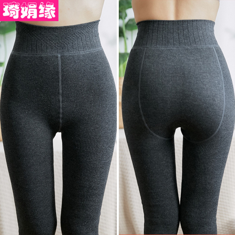 竖条螺纹瘦腿打底女裤秋冬季内外穿一体裤加绒加厚紧身踩脚连裤袜