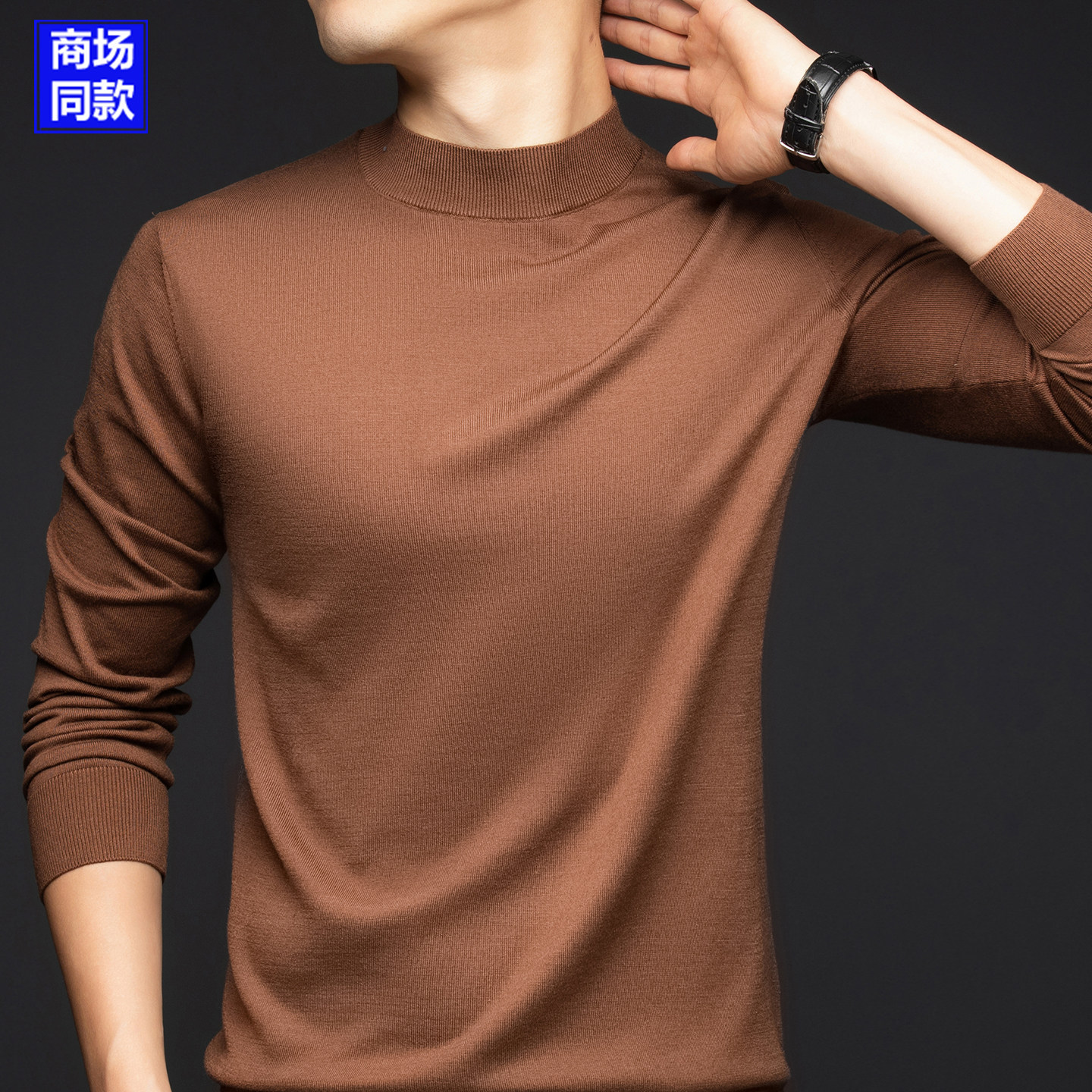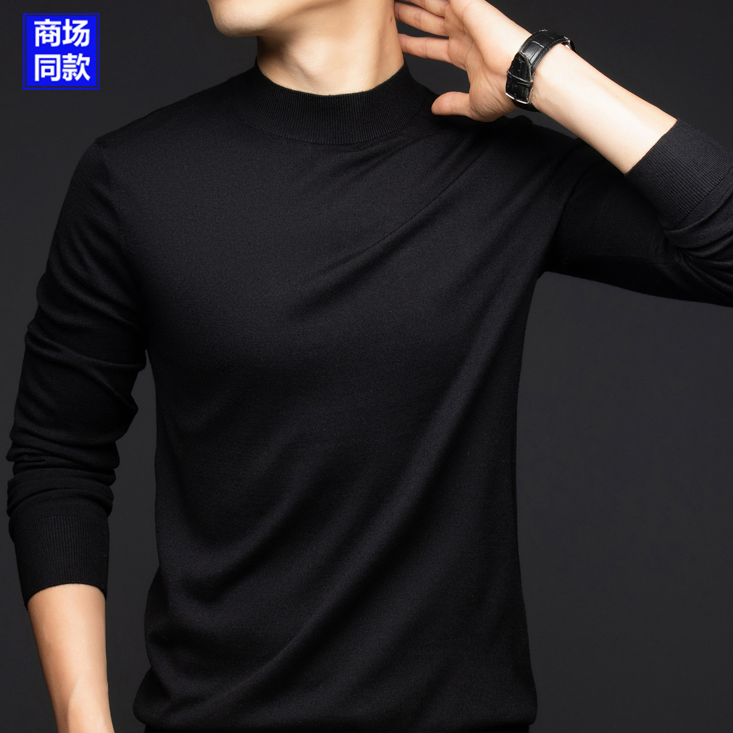 鄂尔多斯市可机洗羊绒衫薄款精纺羊毛衫男半高领品牌打底衫毛衣秋