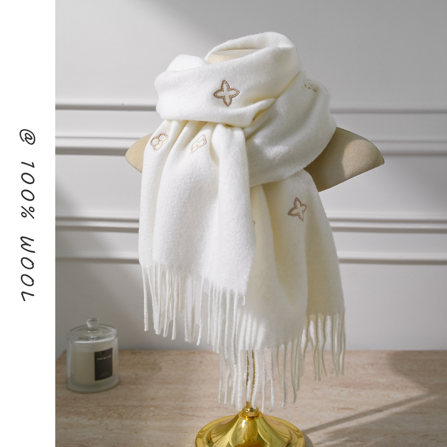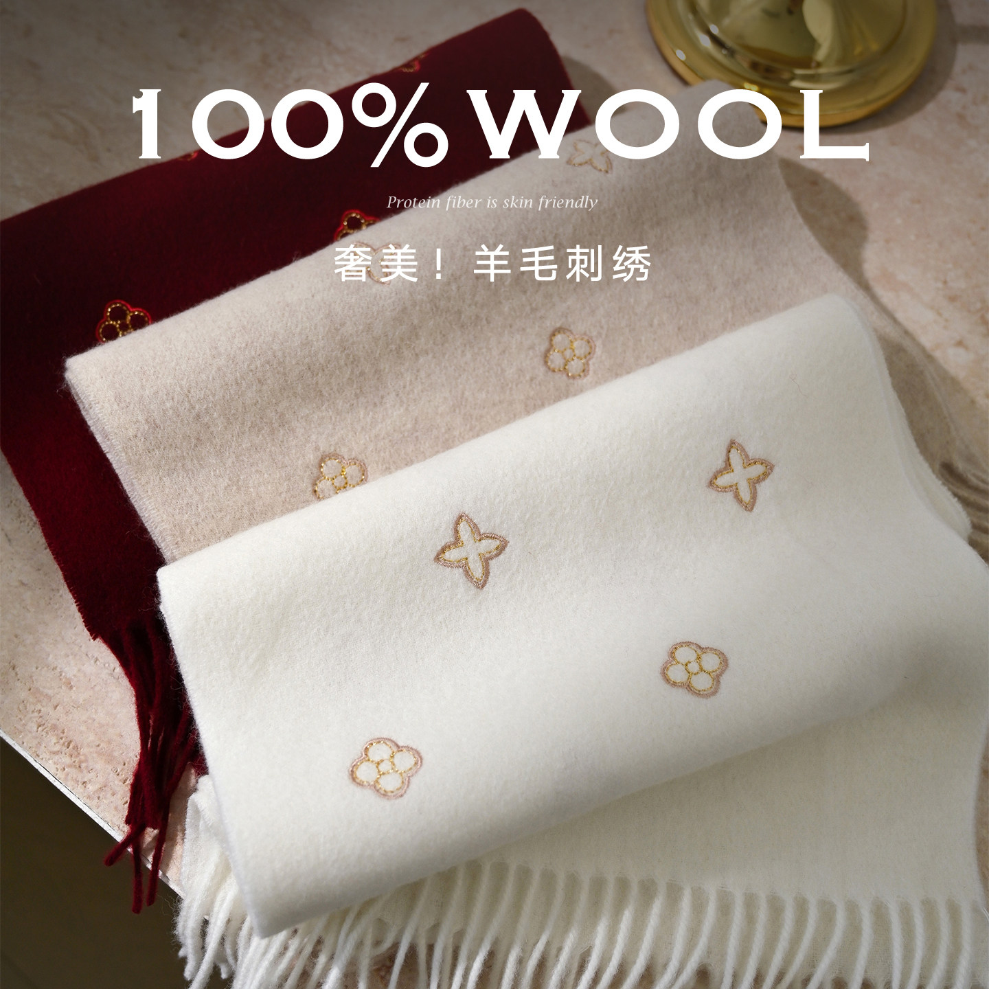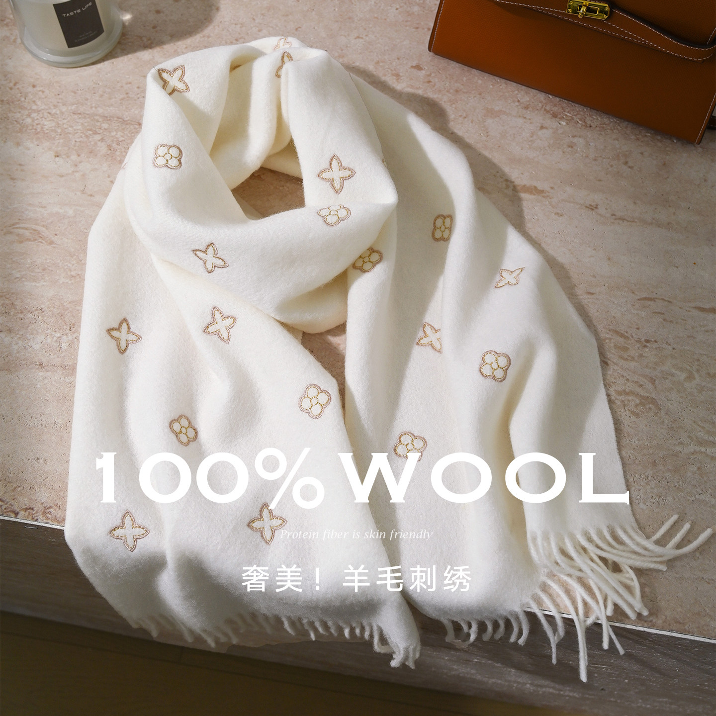 白色羊毛围巾2025超火冬季羊绒女生轻奢高级感女士高端大气上档次