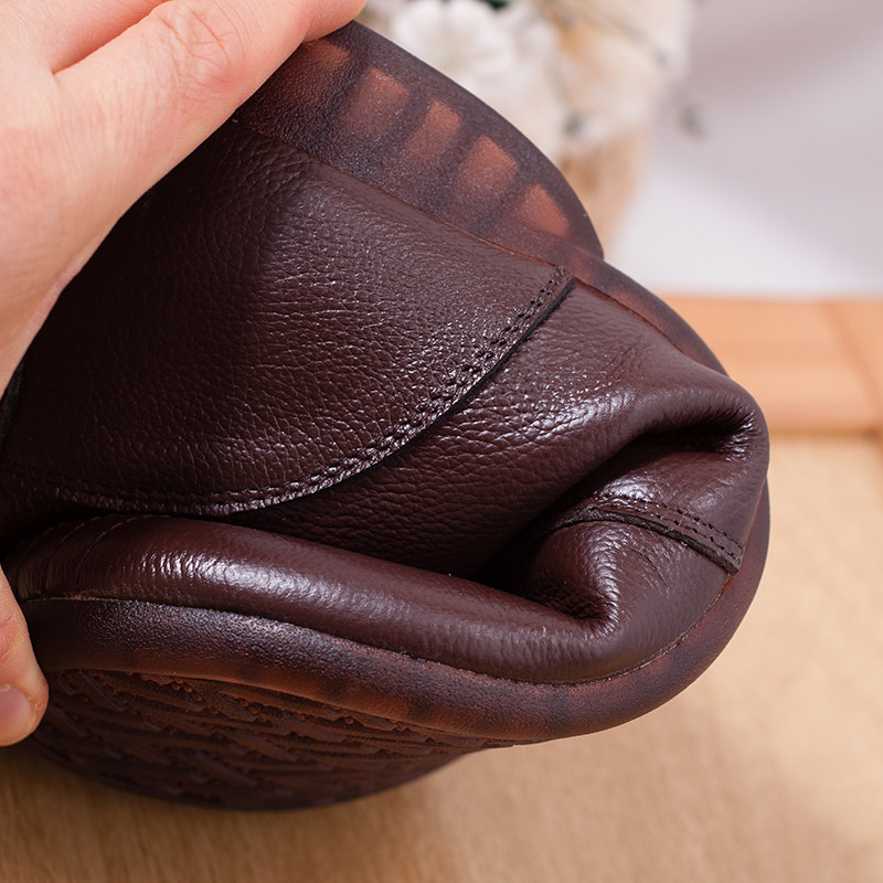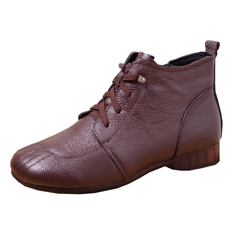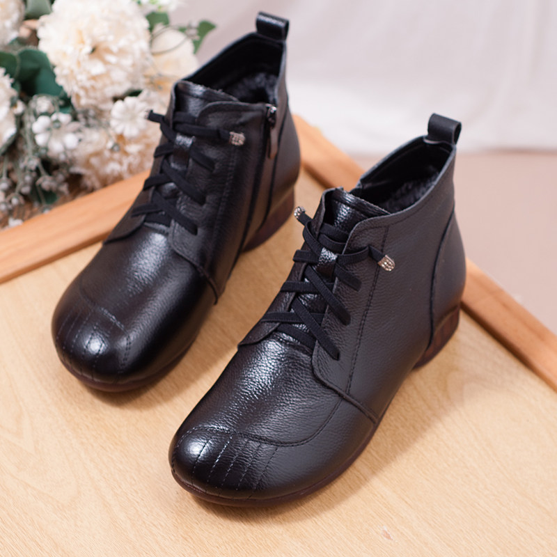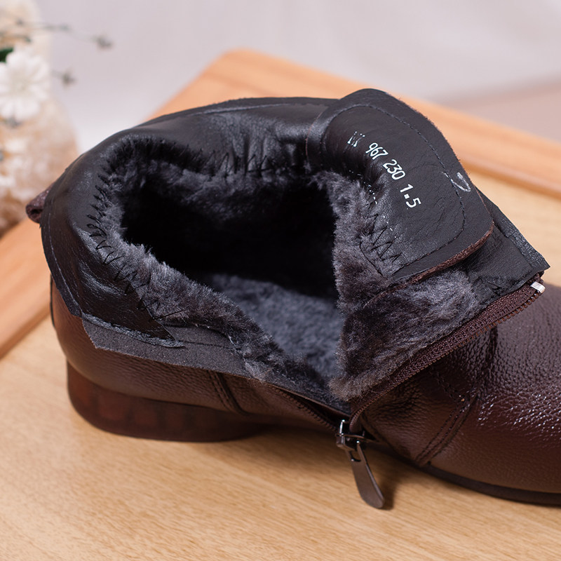 真皮老人棉鞋女冬加绒加厚软底短靴中老年奶奶保暖防滑妈妈鞋平底