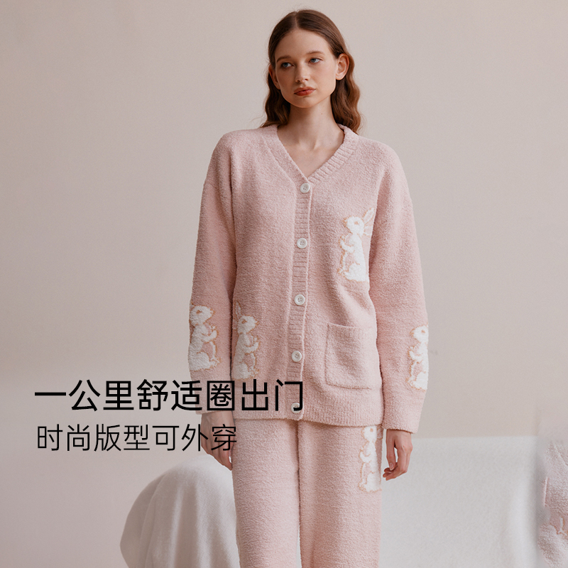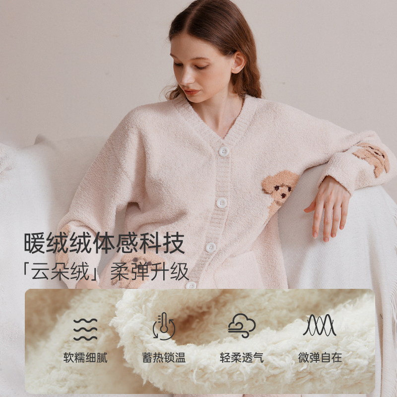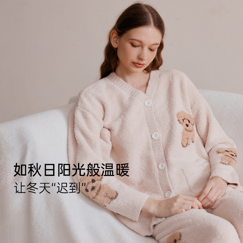 Oak Family新品睡衣长袖秋冬产后月子服半边绒成人家居服分体套装