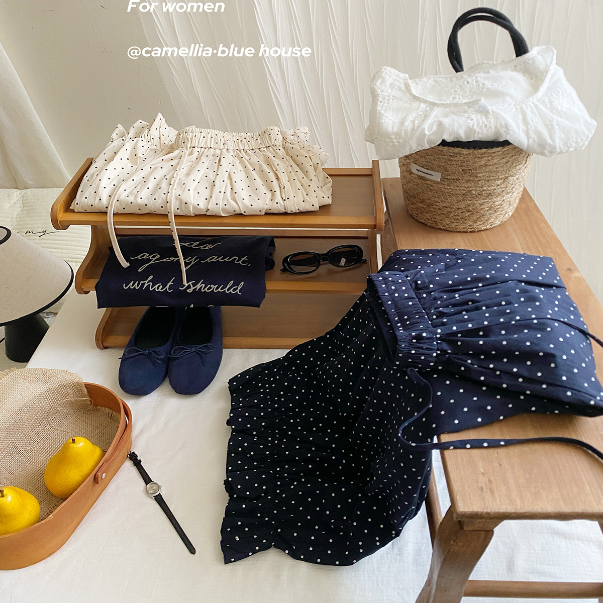 文艺风捏褶波点花苞灯笼裤女夏小个子复古阔腿减龄花边九分休闲裤