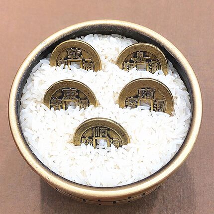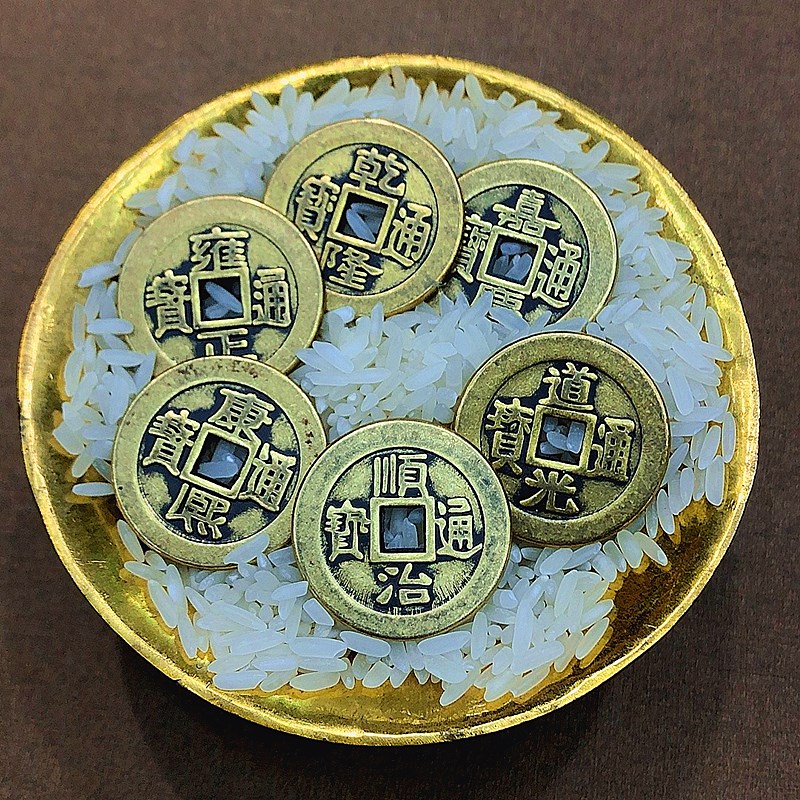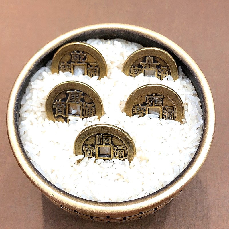 真铜五帝钱黄铜加厚铜钱聚宝盆摆件结婚压箱旺宅招财祈福六帝麻钱