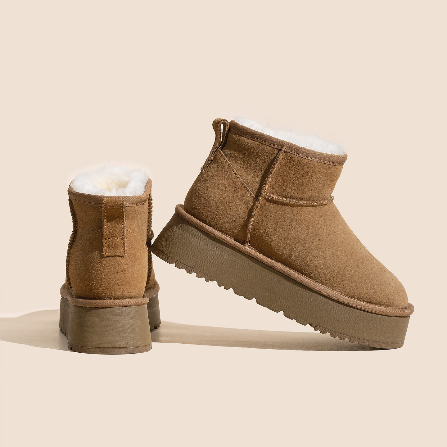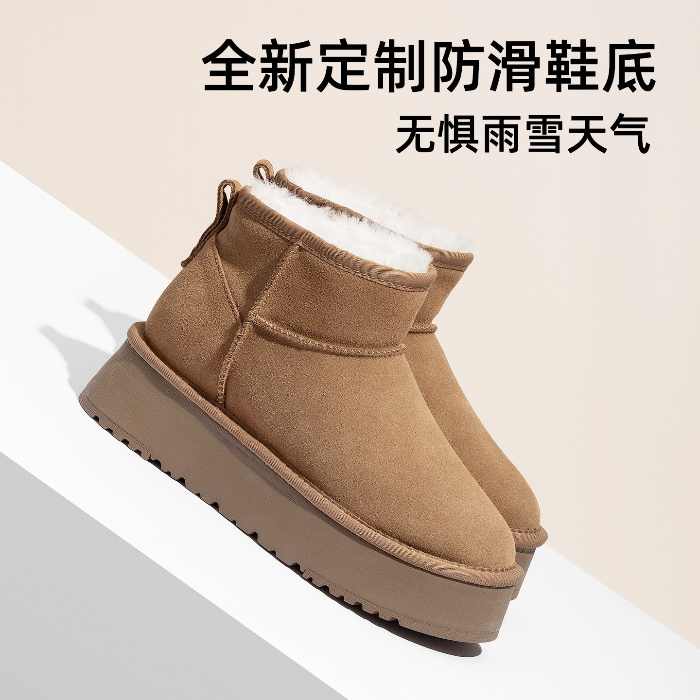 冬新款内增高8厘米雪地靴女加绒加厚羊皮毛一体厚底防滑短靴桑坡