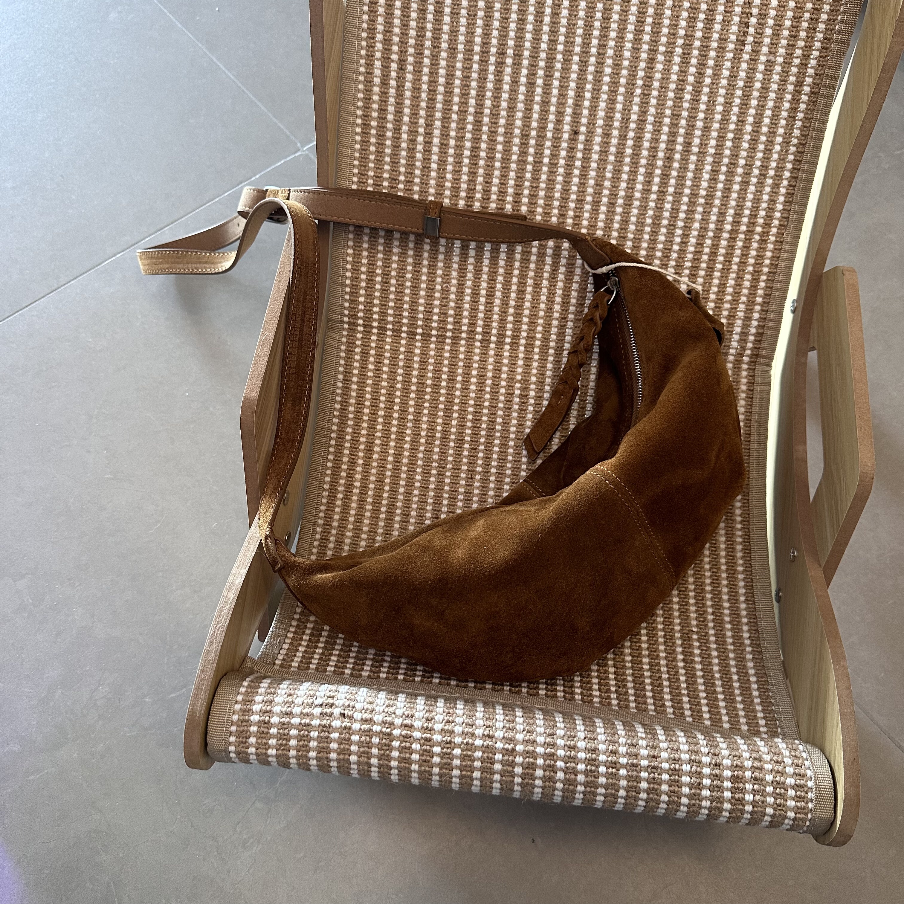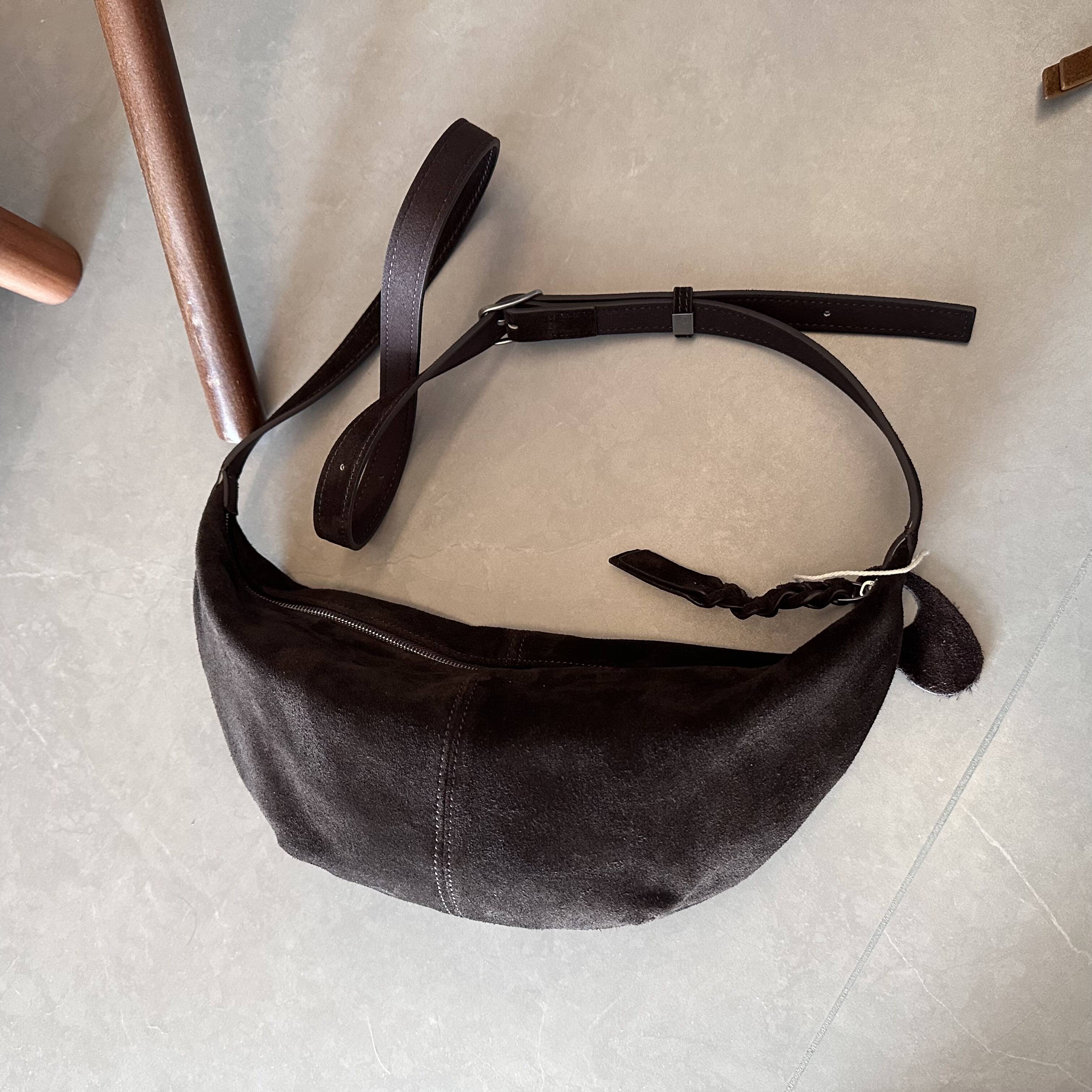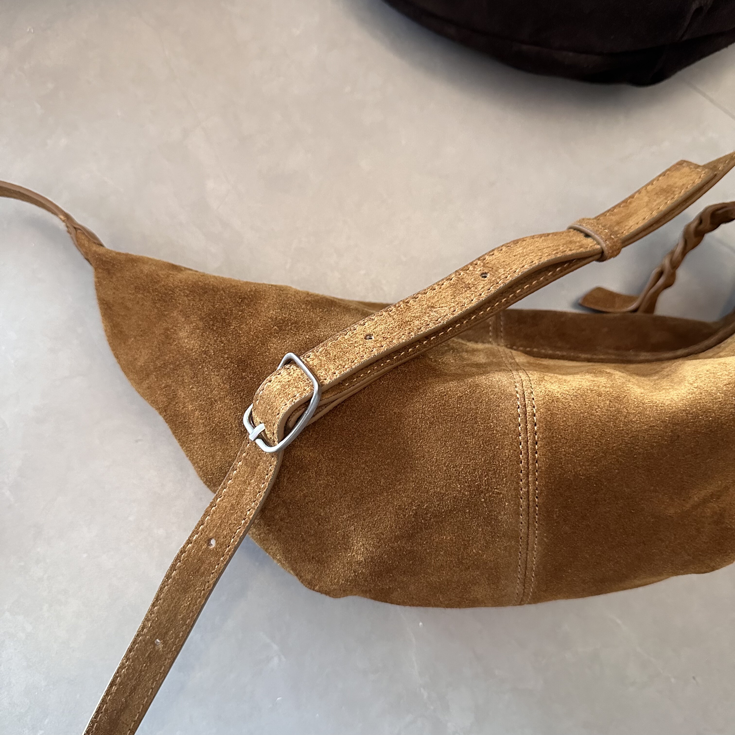 2025新款磨砂牛皮单肩斜挎包小众设计感手提包女简约轻便饺子包
