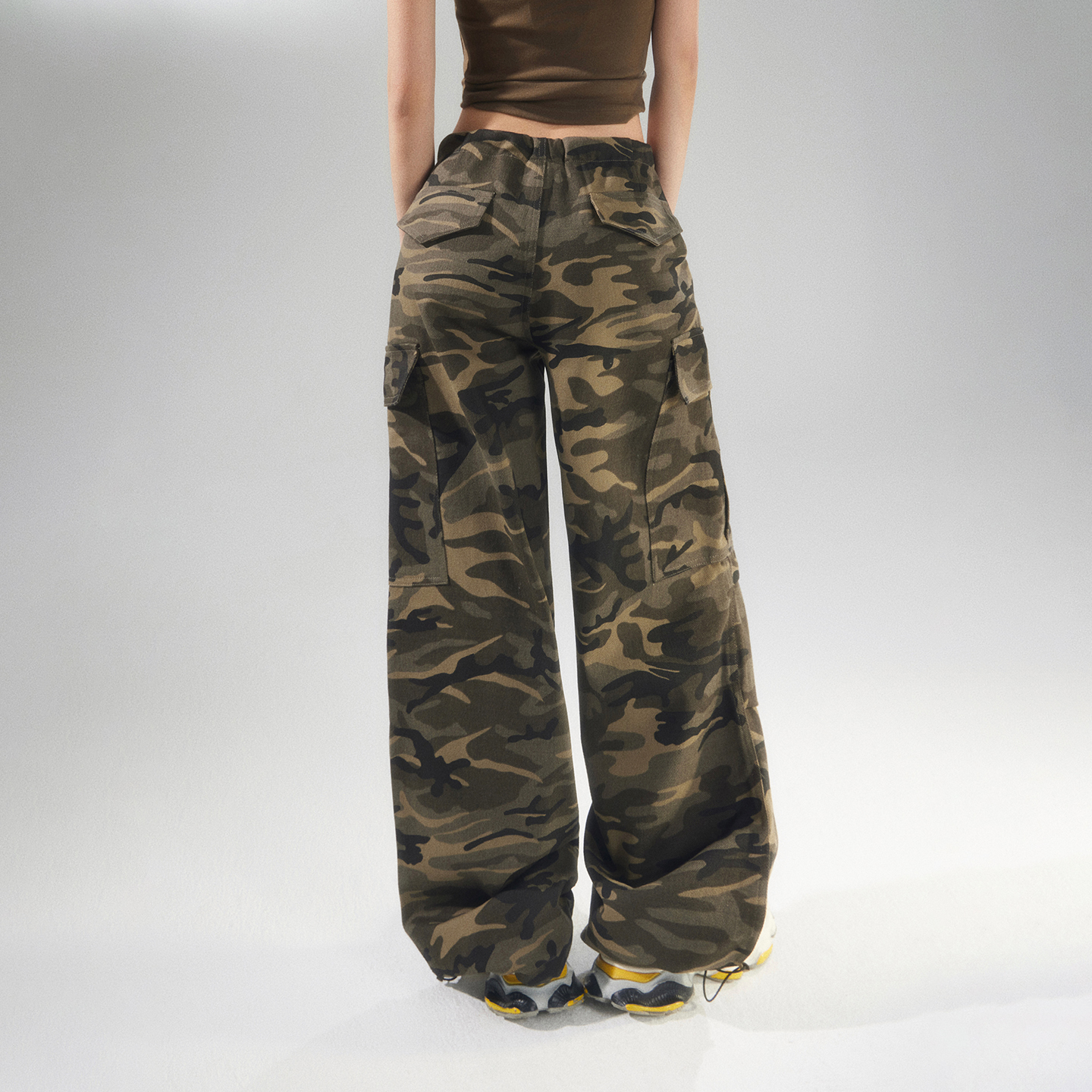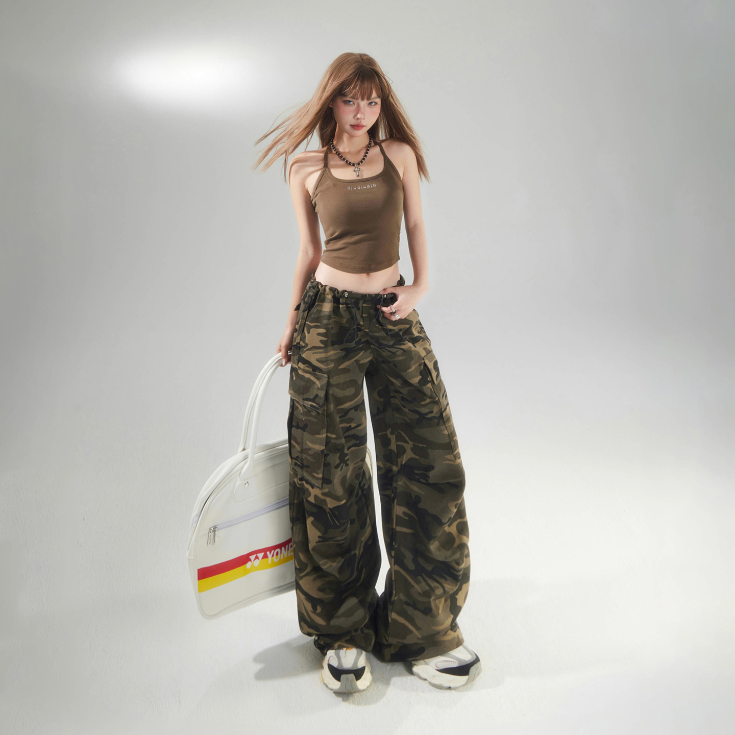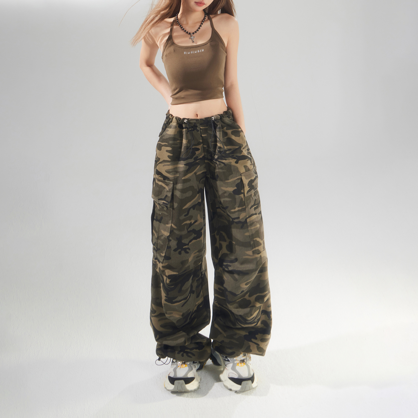 美式复古宽松迷彩阔腿裤高街调节腰束脚百搭工装裤休闲裤女