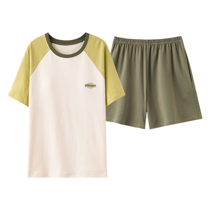 浪莎情侣纯棉带胸垫简约睡衣套装