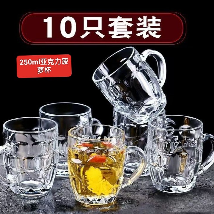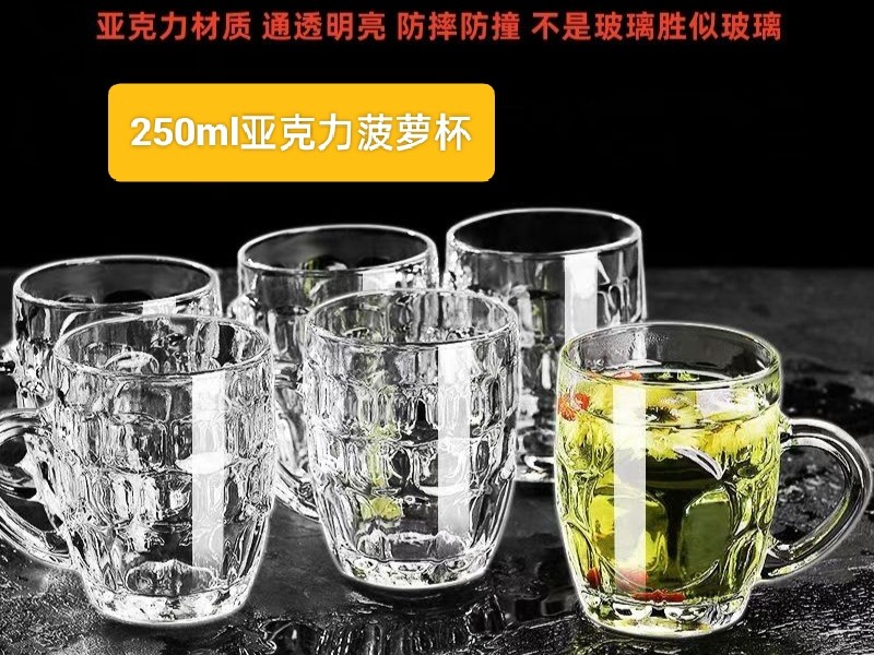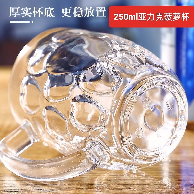 防摔迷你菠萝杯250ml亚克力塑料杯耐摔高透带把酒吧KTV专用啤酒杯