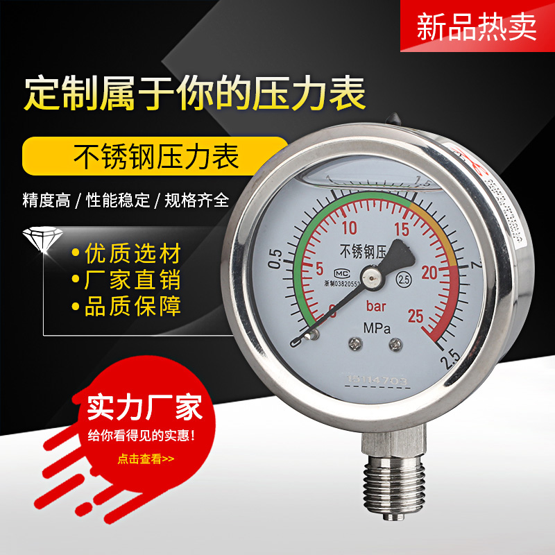 不锈钢压力表YN60BF 耐震油压水压气压液压真空表304耐腐蚀耐高温
