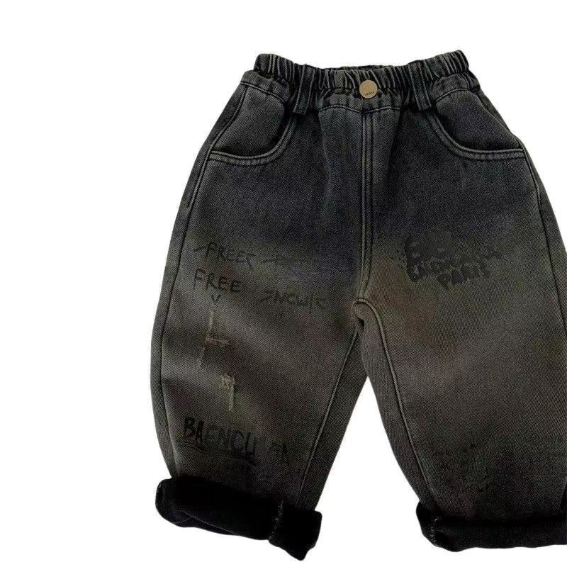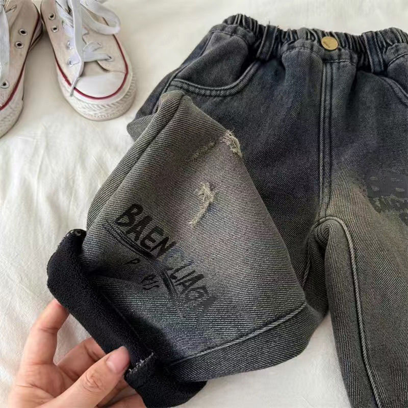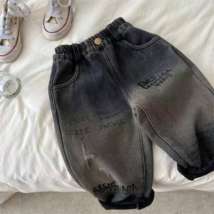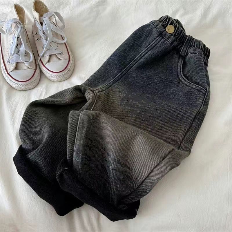 2025儿童长裤冬季新品男女宝宝加厚字母渐变色加绒牛仔长裤外穿潮