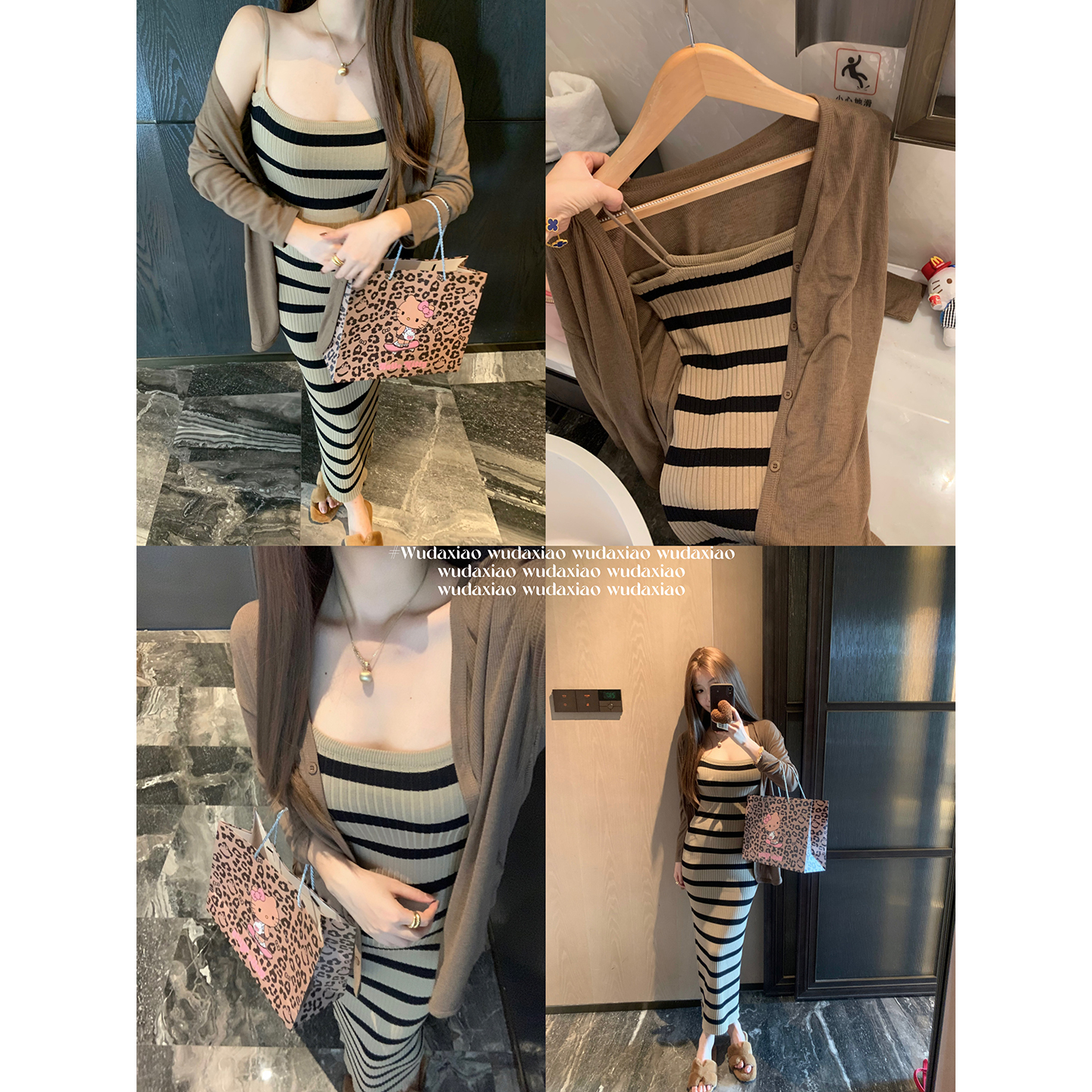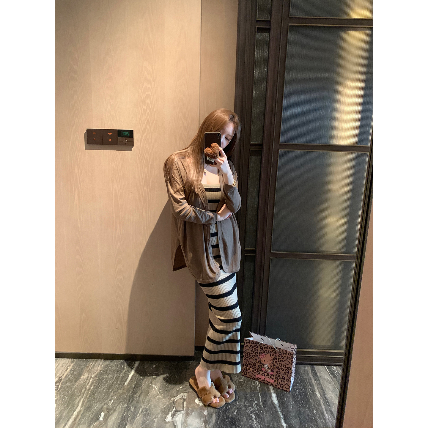 (吴大笑)条纹初语~松弛感舒适显瘦好穿搭背心长裙+开衫两件套