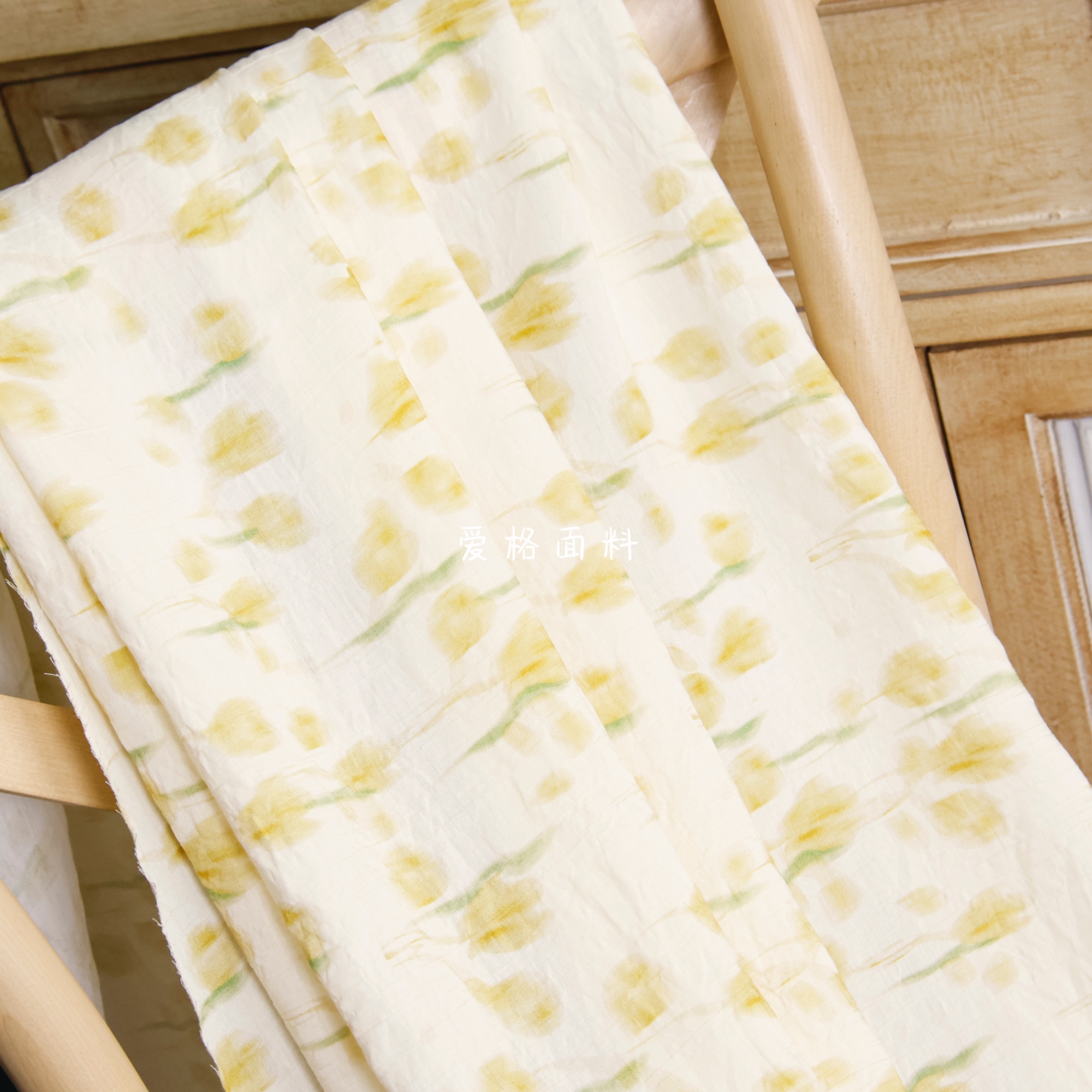 柔软微透 黄色晕染花朵印花褶皱肌理天丝麻面料衬衫连衣裙布料diy