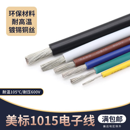 美标1015电子线16 14 12 10 8AWG电线105°高温600V导线镀锡铜