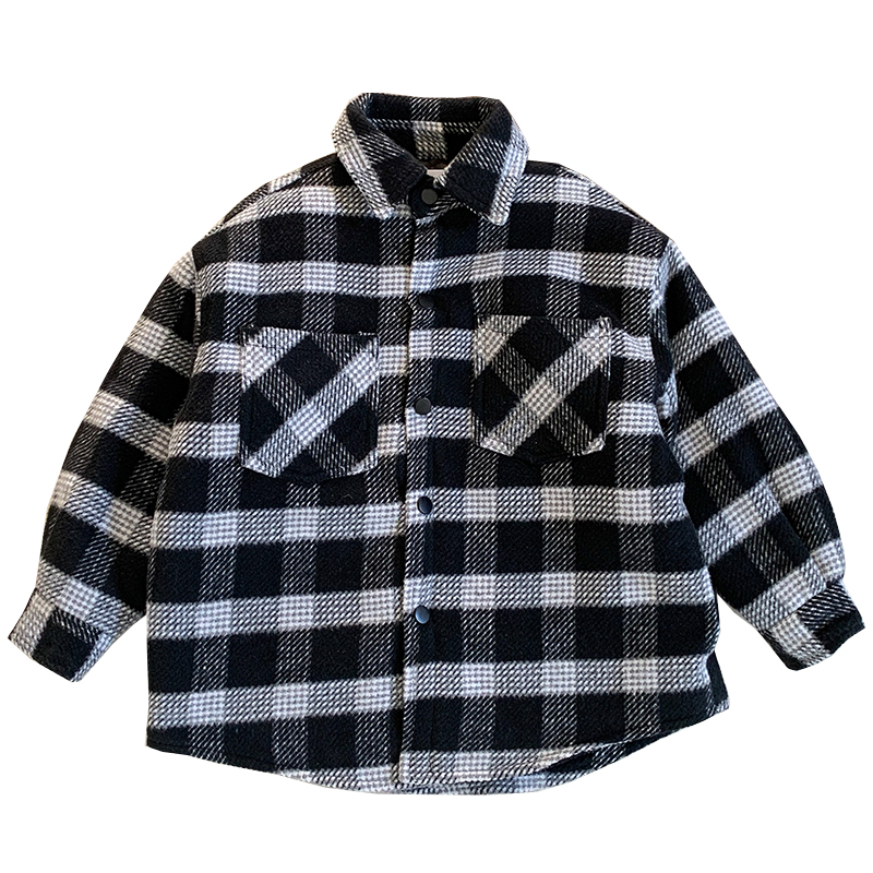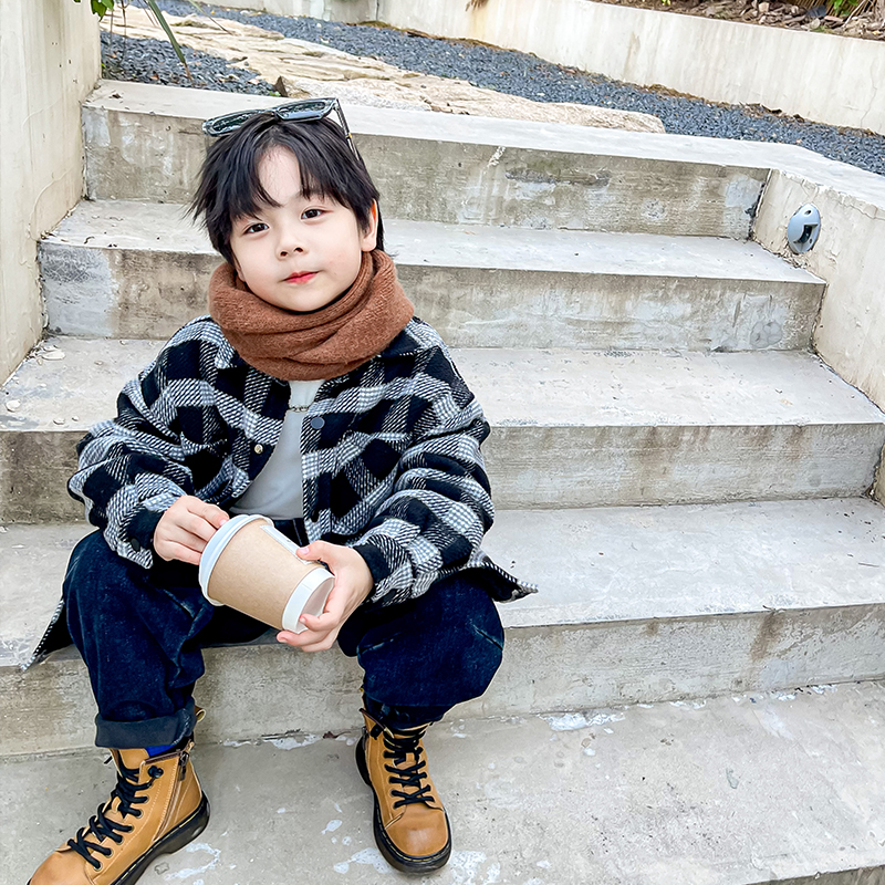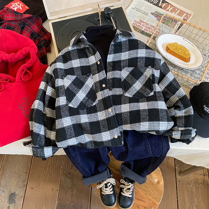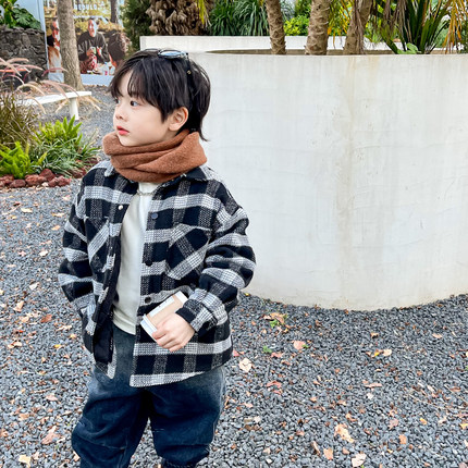 男童秋冬季夹棉外套2023新款中小童冬装加厚儿童格子衬衫男孩洋气