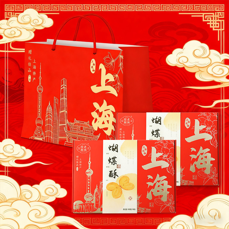 上海蝴蝶酥礼盒2盒赠礼袋特产