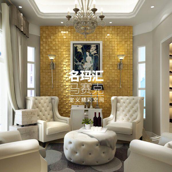 金色金属不锈钢吧台凹凸名玛汇3D立体背景墙马赛克瓷砖墙砖餐厅