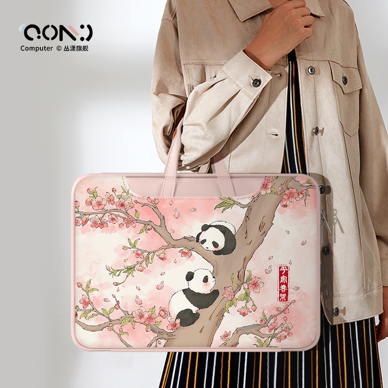 原创熊猫笔记本电脑包手提适用苹果macbook15点6寸卡通小新air14华为matebook联想女13平板pro16内胆包高级感