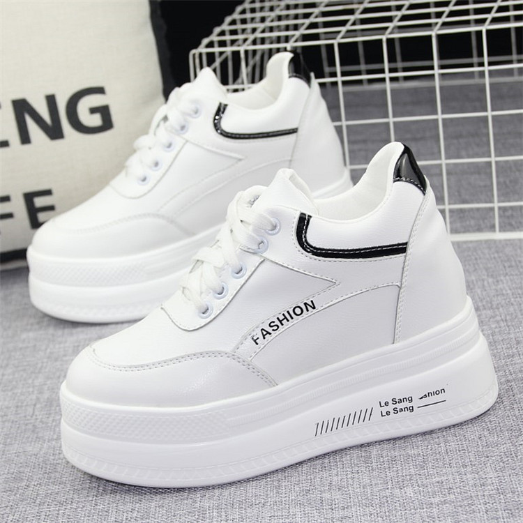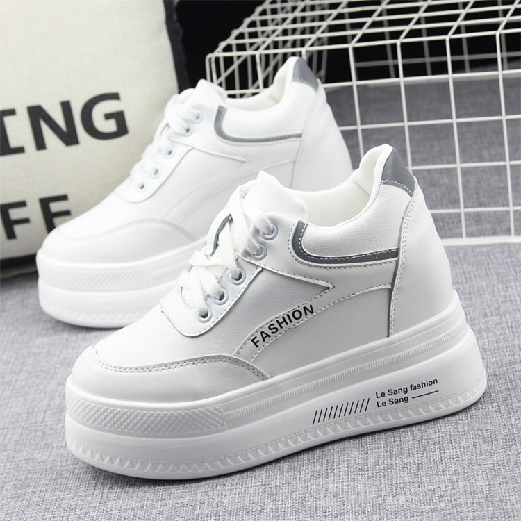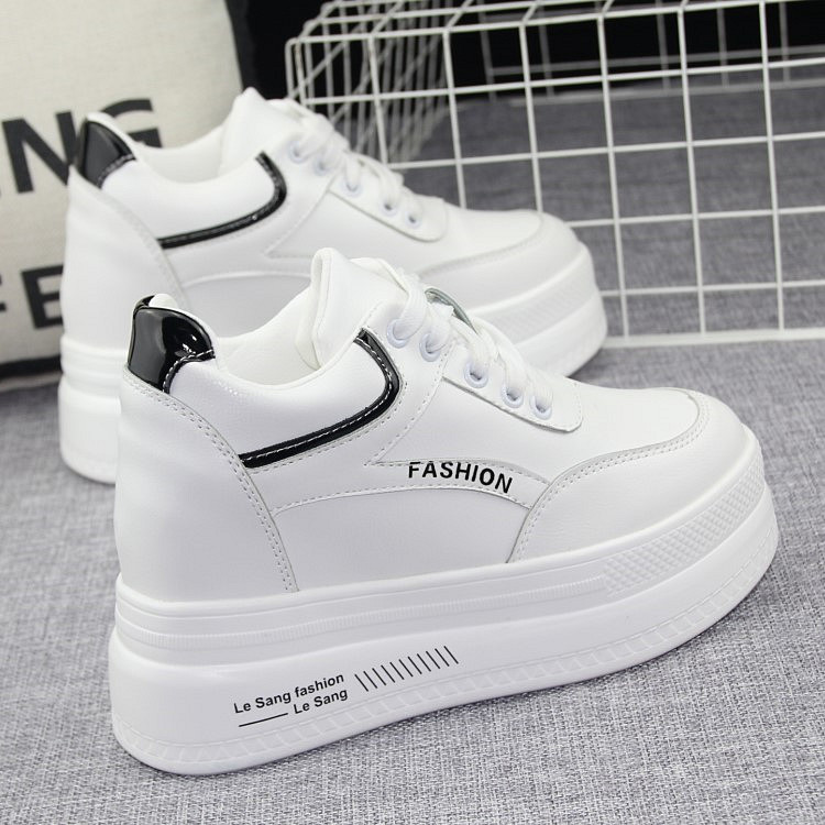 秋季厚底内增高10cm小白鞋女2020新款潮鞋百搭坡跟休闲鞋学生白鞋