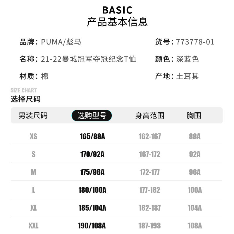 Puma/彪马短袖T恤第二次联赛冠军