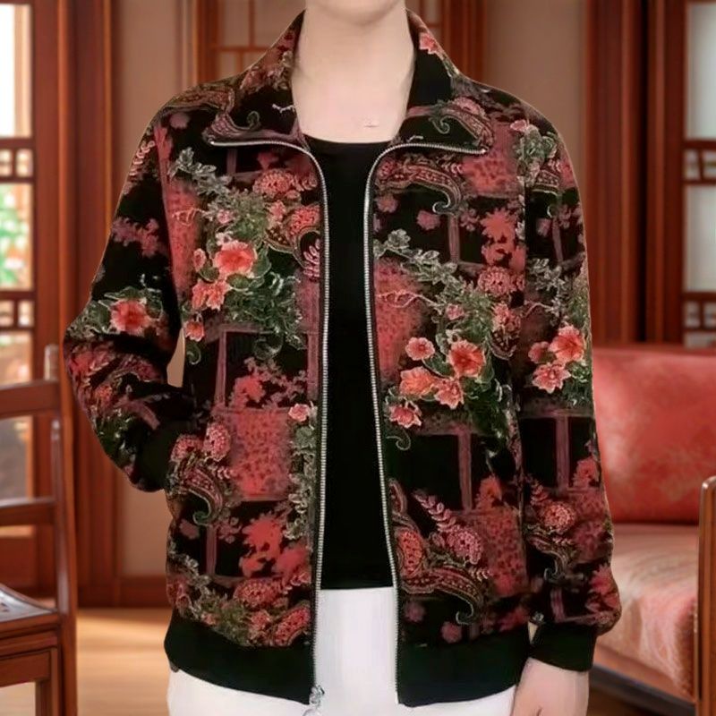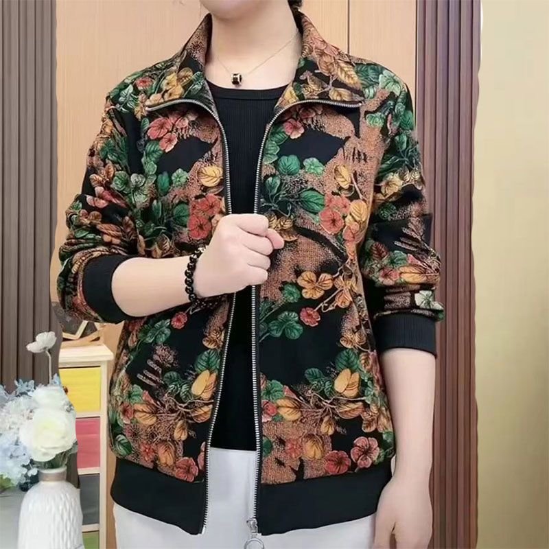 高档翻领春秋夹克衫外套新款夏天中老年妈妈遮肉宽松长袖防晒上衣