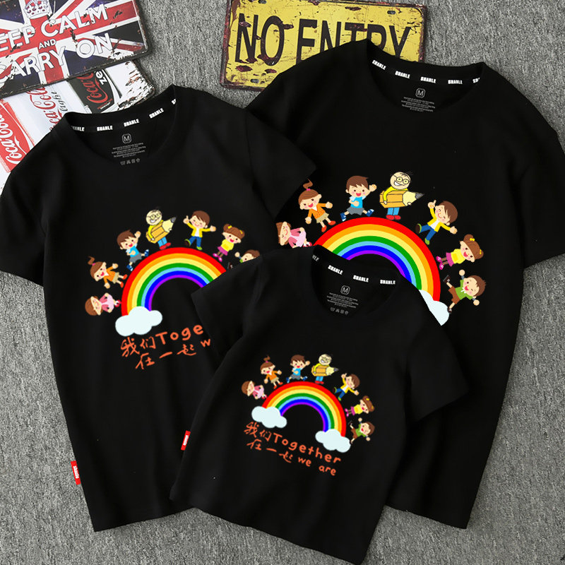 亲子装一家三口洋气夏装2025新款潮短袖t恤我们在一起出游班服
