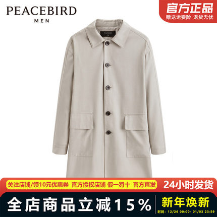 太平鸟男装 2023年春秋新款宽松时尚男士中长款风衣外套B1BED1407