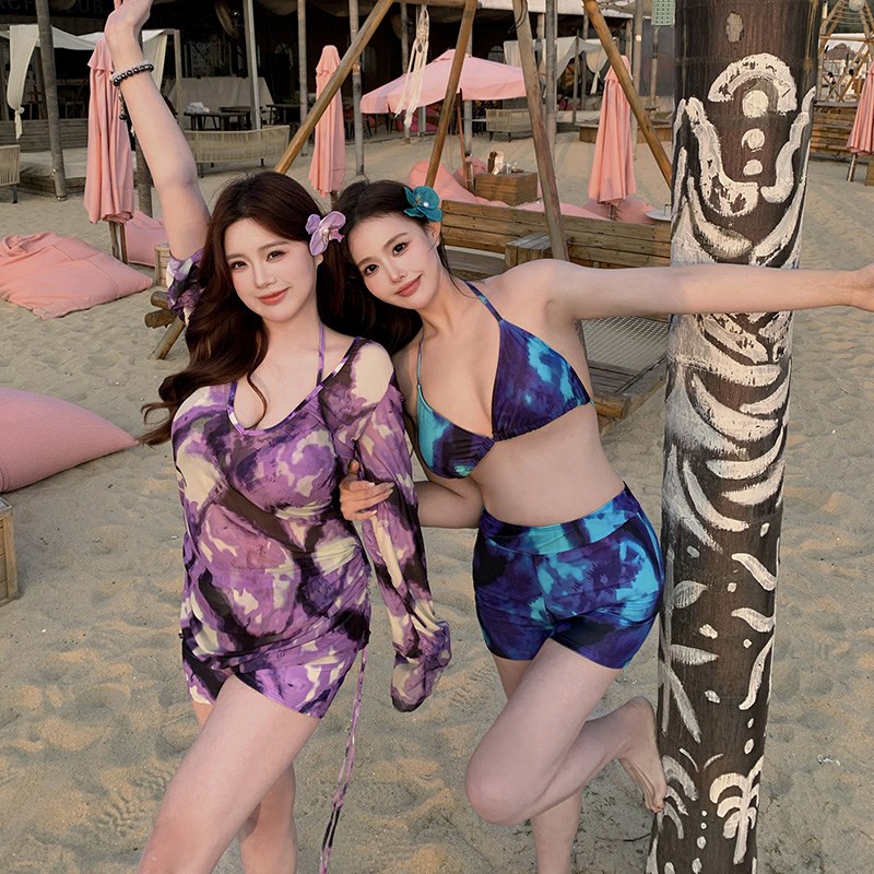大码泳衣女胖mm200斤分体三件套长袖防晒罩衫性感海边度假游泳装
