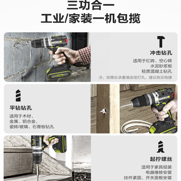 威克士70牛无刷冲击钻WU369X多功能家用手电钻锂电池电动手钻工具