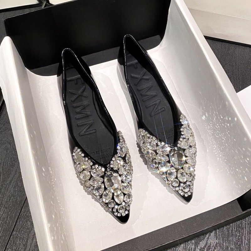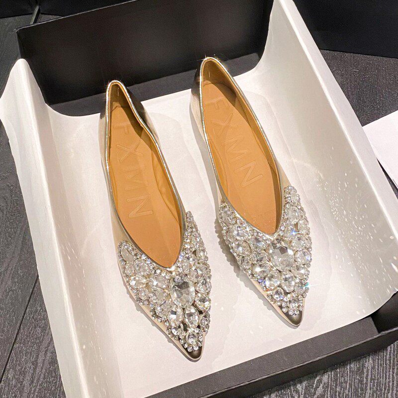 法式复古尖头浅口精致水钻名媛宴会鞋仙女气质银色平底婚鞋伴娘鞋