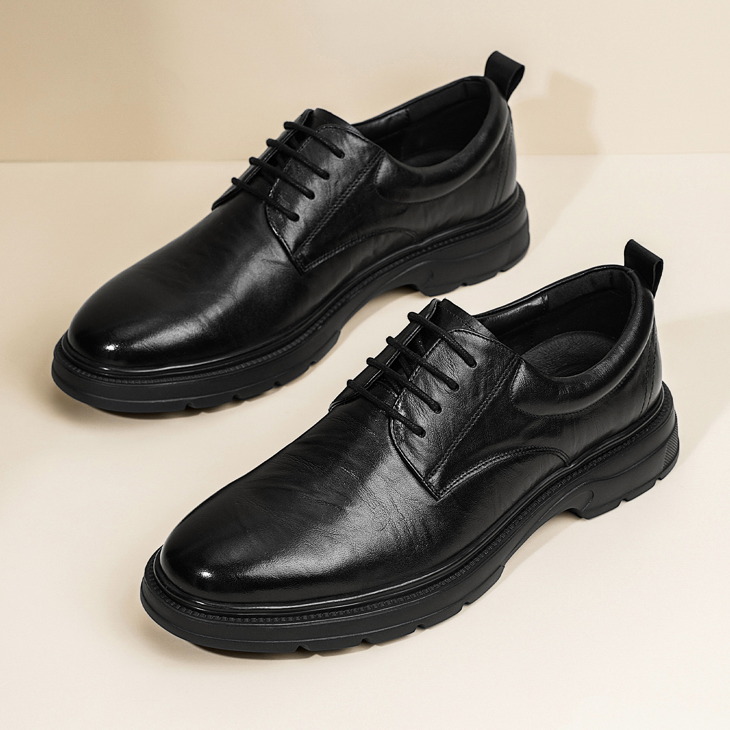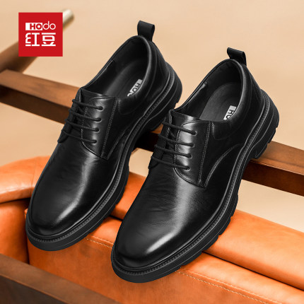 红豆男士皮鞋男款全黑公务鞋男软底舒适上班商务休闲头层真皮男鞋