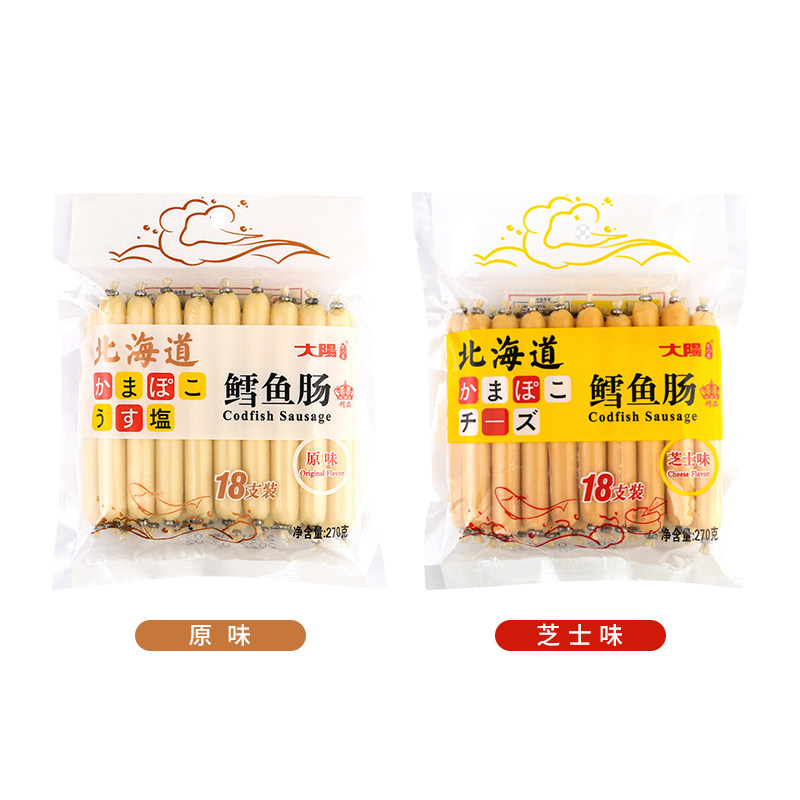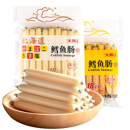 香港品牌大阳北海道鳕鱼肠270g即食鱼肉肠芝士味儿童零食佐餐泡面