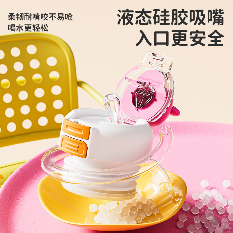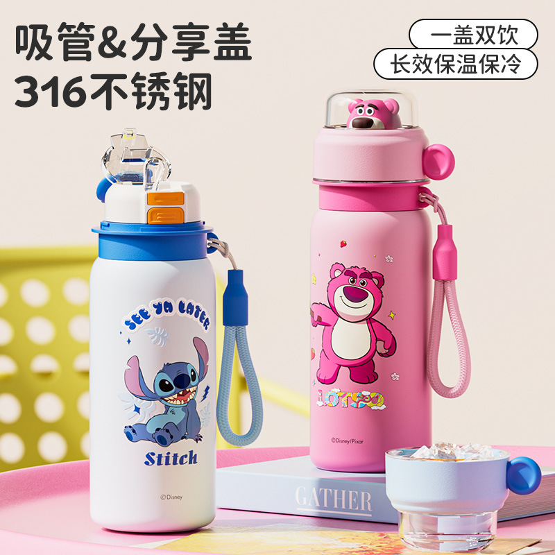 正版卡通儿童保温杯学生户外运动吸管水杯双饮弹跳杯子
