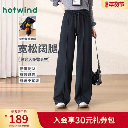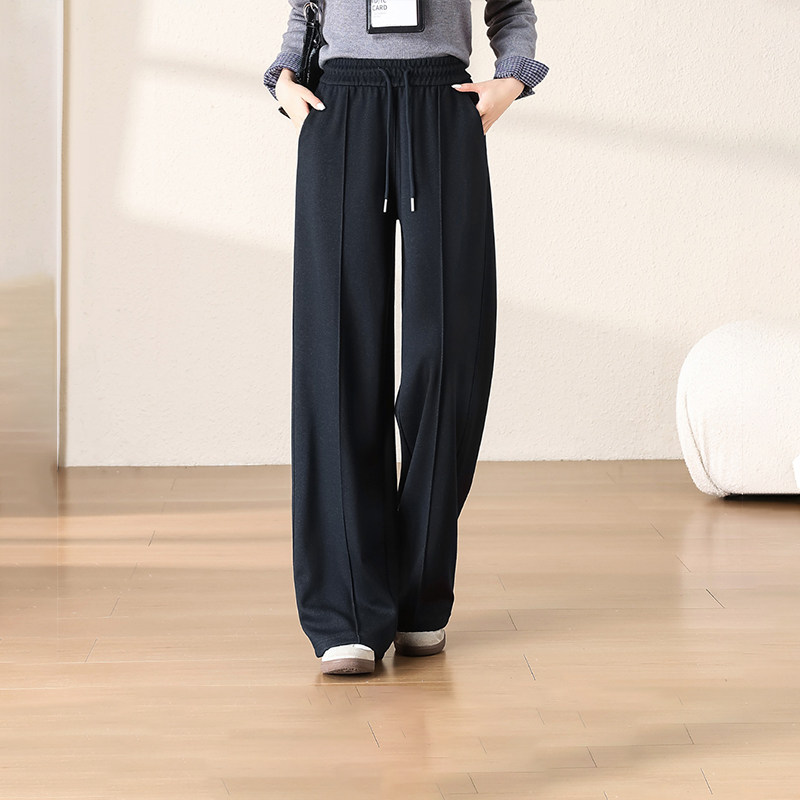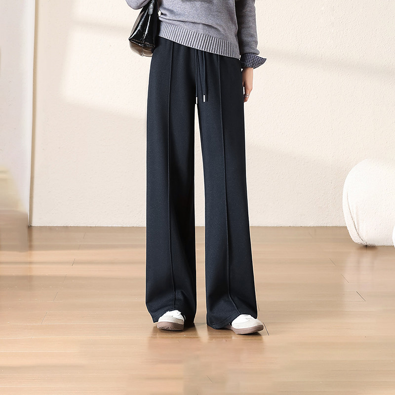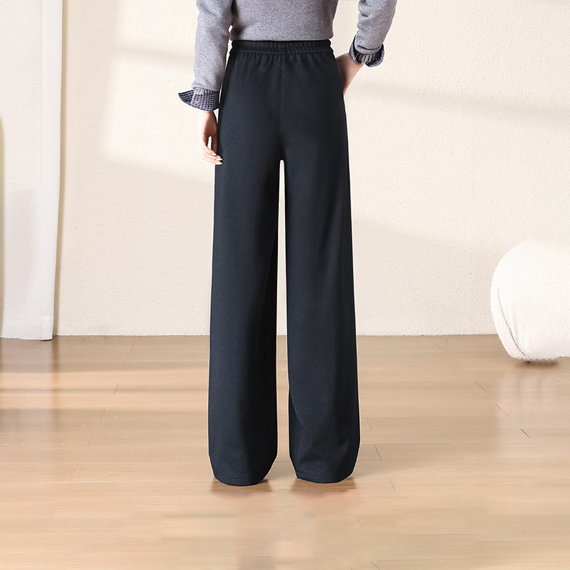 秋冬加厚保暖纯色百搭高腰休闲直筒款女士设计感拼接显瘦阔腿长裤