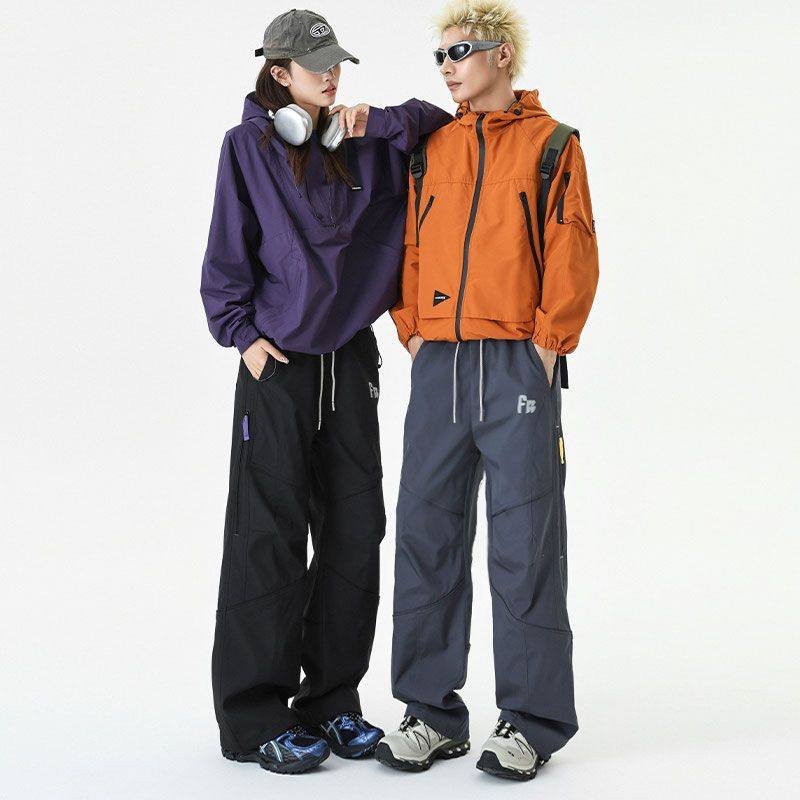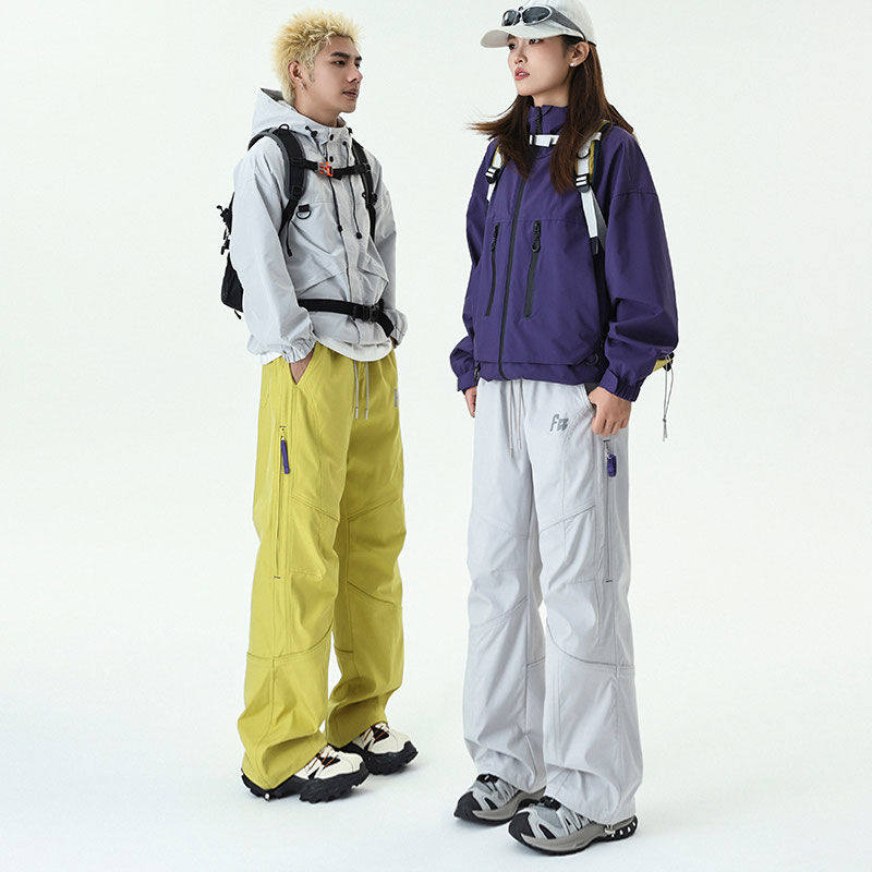 设计感高街潮牌户外情侣冲锋裤秋冬季直筒防风防水潮流加绒工装裤