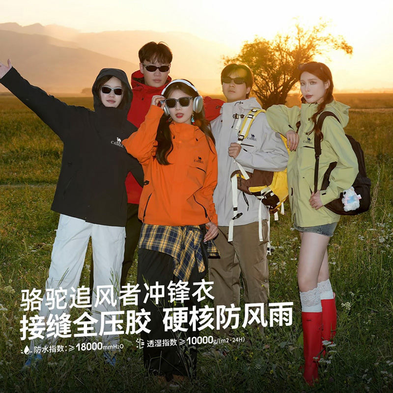 骆驼追风者户外冲锋衣防风防水男女款秋冬流光风外套徒步登山服