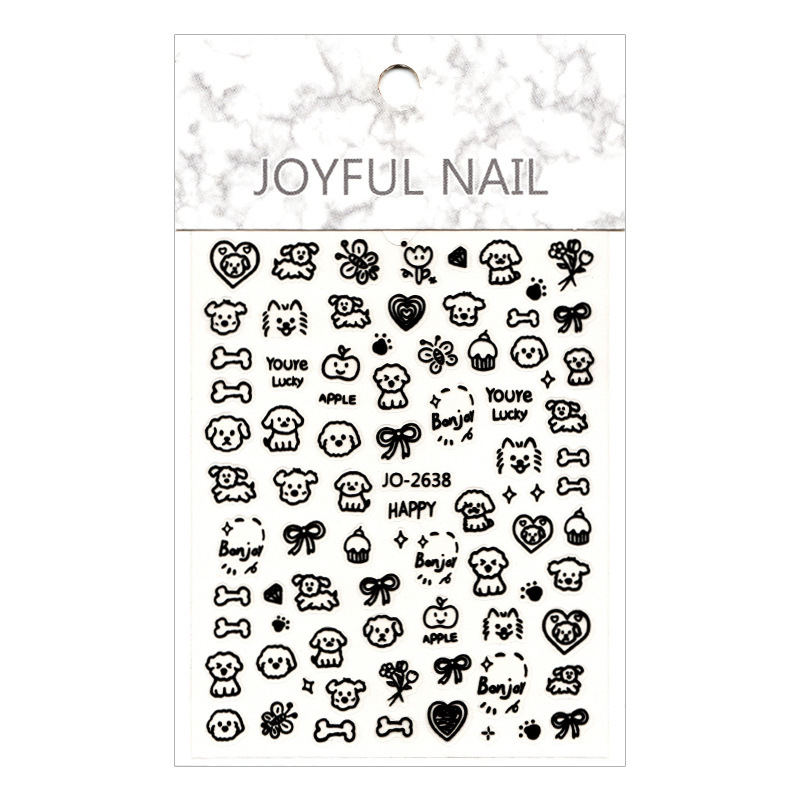 美甲贴纸小狗猫咪甜酷涂鸦贴纸可爱指甲饰品小图案蝴蝶结指甲贴花